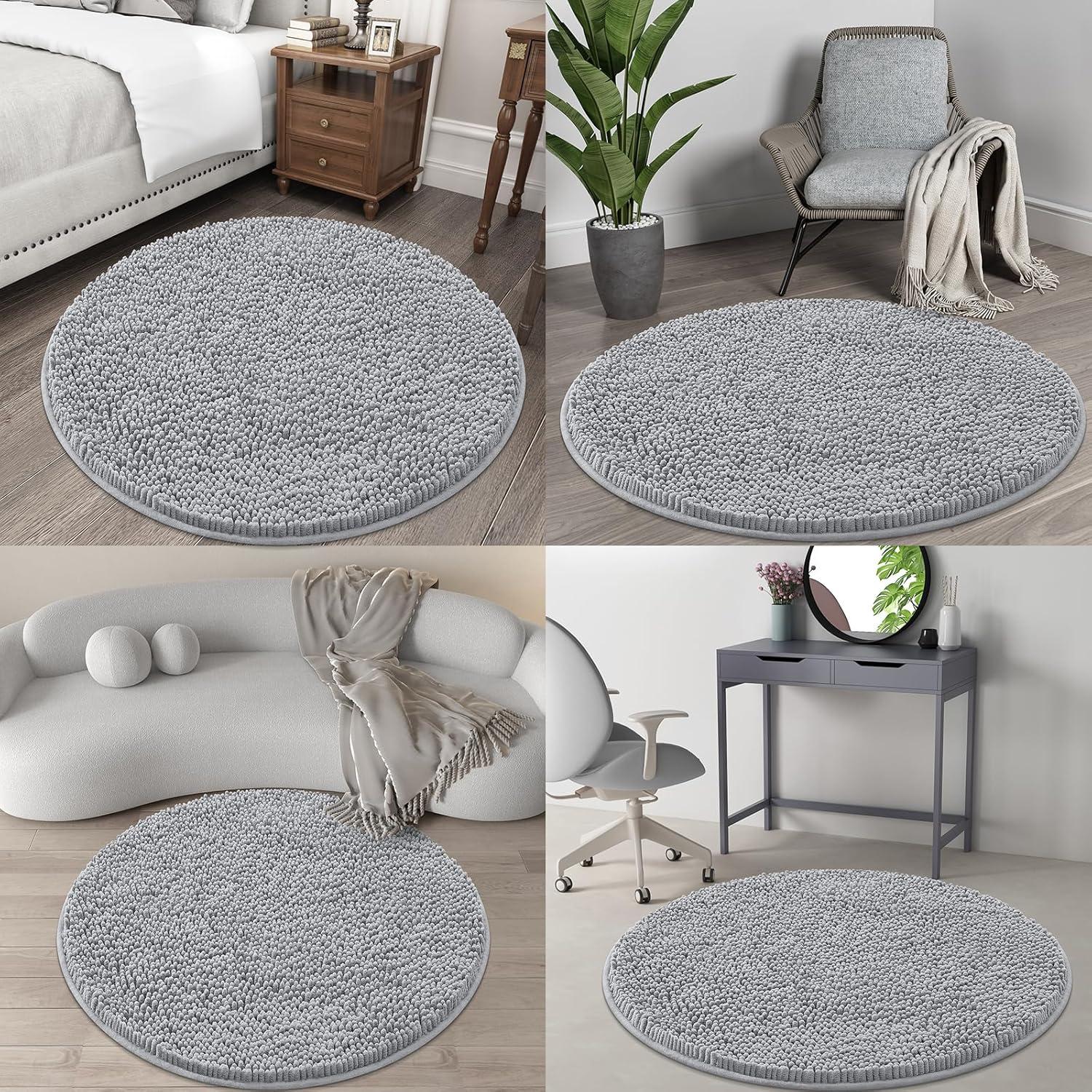 OLANLY 30-inch Round Bathroom Rugs, Extra Soft and Absorbent Chenille Bath Rugs, Quick Dry Machine Washable Bath Mats for Bathroom Floor, Tub and Shower, Home Decor Accessories, Grey(Light Grey)