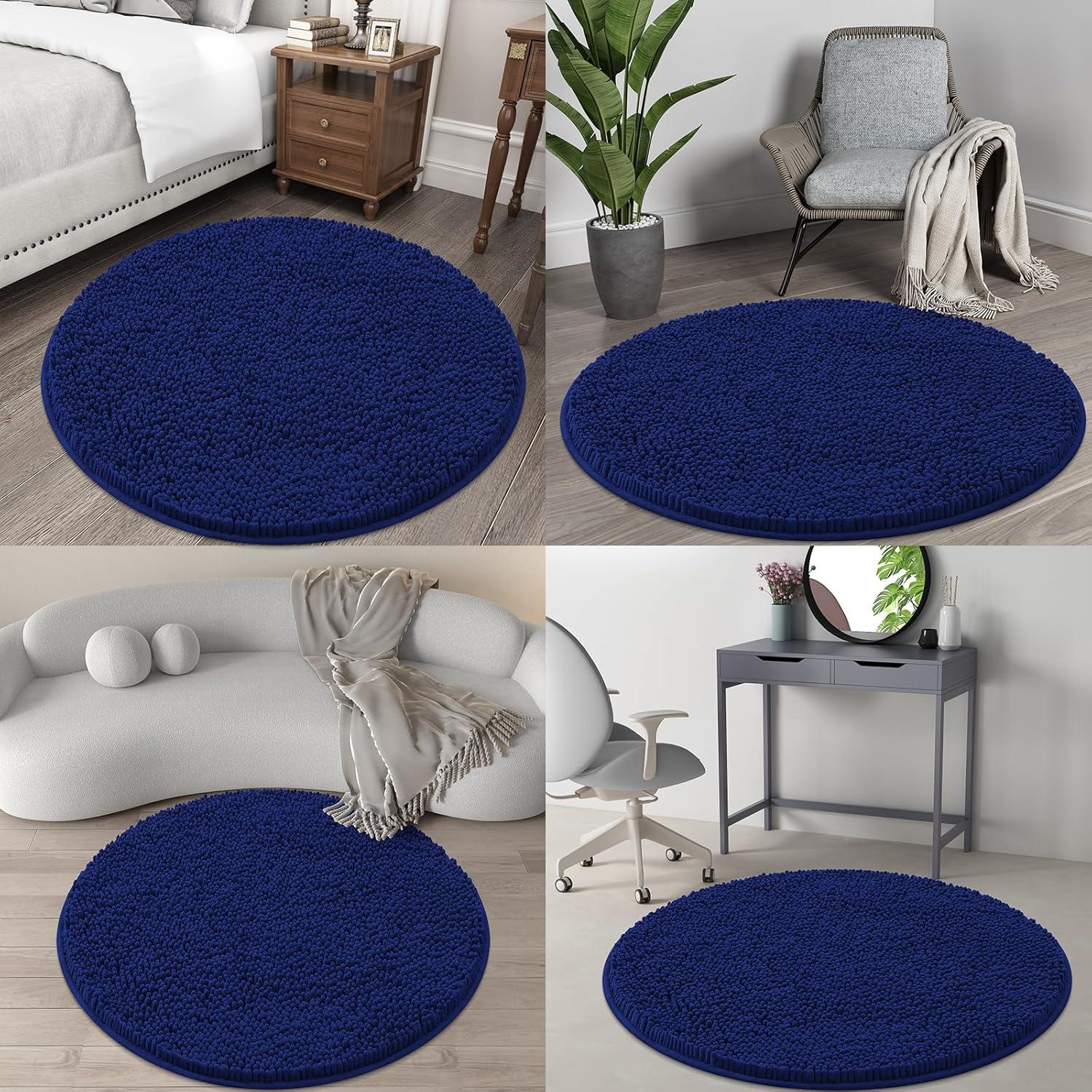 OLANLY 30-inch Round Bathroom Rugs, Extra Soft and Absorbent Chenille Bath Rugs, Quick Dry Machine Washable Bath Mats for Bathroom Floor, Tub and Shower, Home Decor Accessories, Grey(Navy)