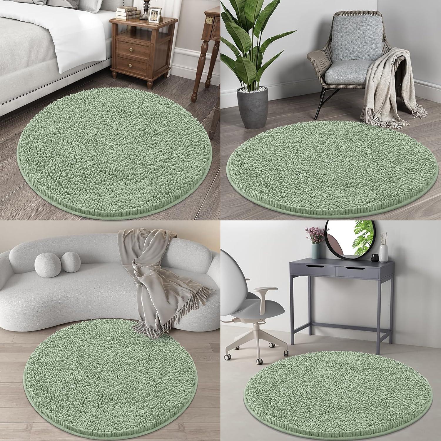 OLANLY 30-inch Round Bathroom Rugs, Extra Soft and Absorbent Chenille Bath Rugs, Quick Dry Machine Washable Bath Mats for Bathroom Floor, Tub and Shower, Home Decor Accessories, Grey(Sage Green)