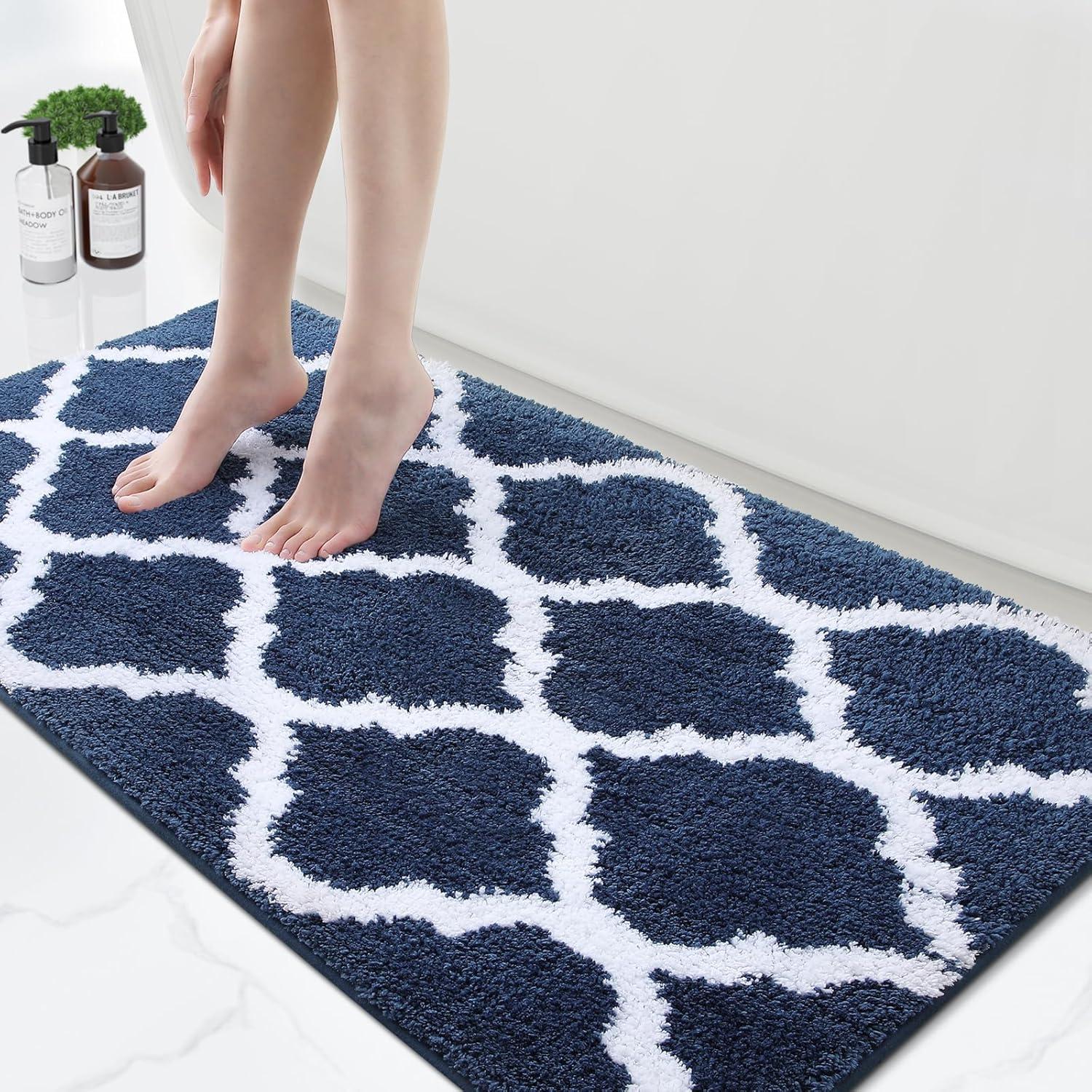 OLANLY Bathroom Rugs 47×24, Soft and Absorbent Microfiber Bath Rugs, Non-Slip Shaggy Shower Carpet, Machine Wash Dry, Bath Mats for Bathroom Floor, Tub and Shower, Grey(Navy)