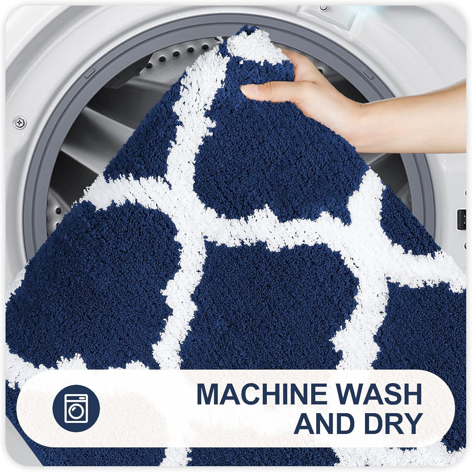 OLANLY Bathroom Rugs 47x24, Soft and Absorbent Microfiber Bath Rugs, Non-Slip Shaggy Shower Carpet, Machine Wash Dry, Bath Mats for Bathroom Floor, Tub and Shower, Grey(Navy)