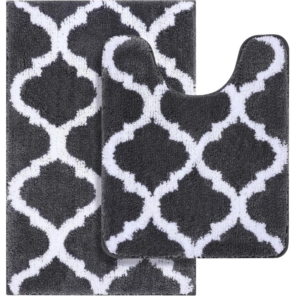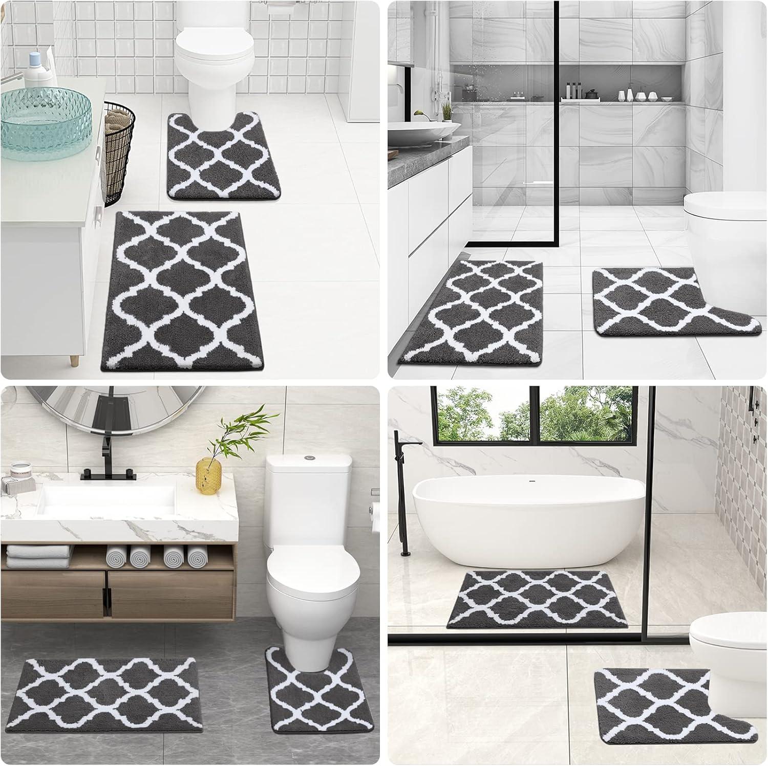 [Luxurious Comfort] Immerse your feet in pure comfort with our bathroom rug set, featuring a contemporary Moroccan geometric design and a 0.6-inch high pile created using an advanced ultra-fine fiber-locking technique. This exquisite bathroom mat set not only enhances the comfort of your bathroom but also adds a touch of sophistication to your space