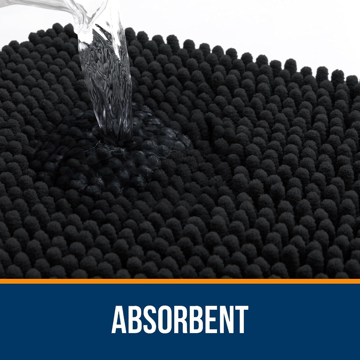 OLANLY Bathroom Rugs Sets 2 Piece, Soft Absorbent Chenille Bath Mats Area Rug Set, Non-Slip, Quick Dry, Machine Washable Bath Mats for Bathroom, Home Decor Accessories (30″x20″+24″x16″, Grey)(Black)
