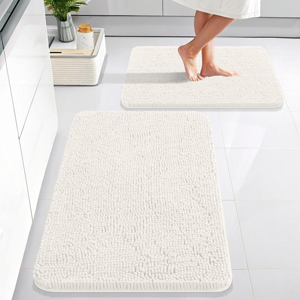OLANLY Bathroom Rugs Sets 2 Piece, Soft Absorbent Chenille Bath Mats Area Rug Set, Non-Slip, Quick Dry, Machine Washable Bath Mats for Bathroom, Home Decor Accessories (30″x20″+24″x16″, Grey)(Ivory)