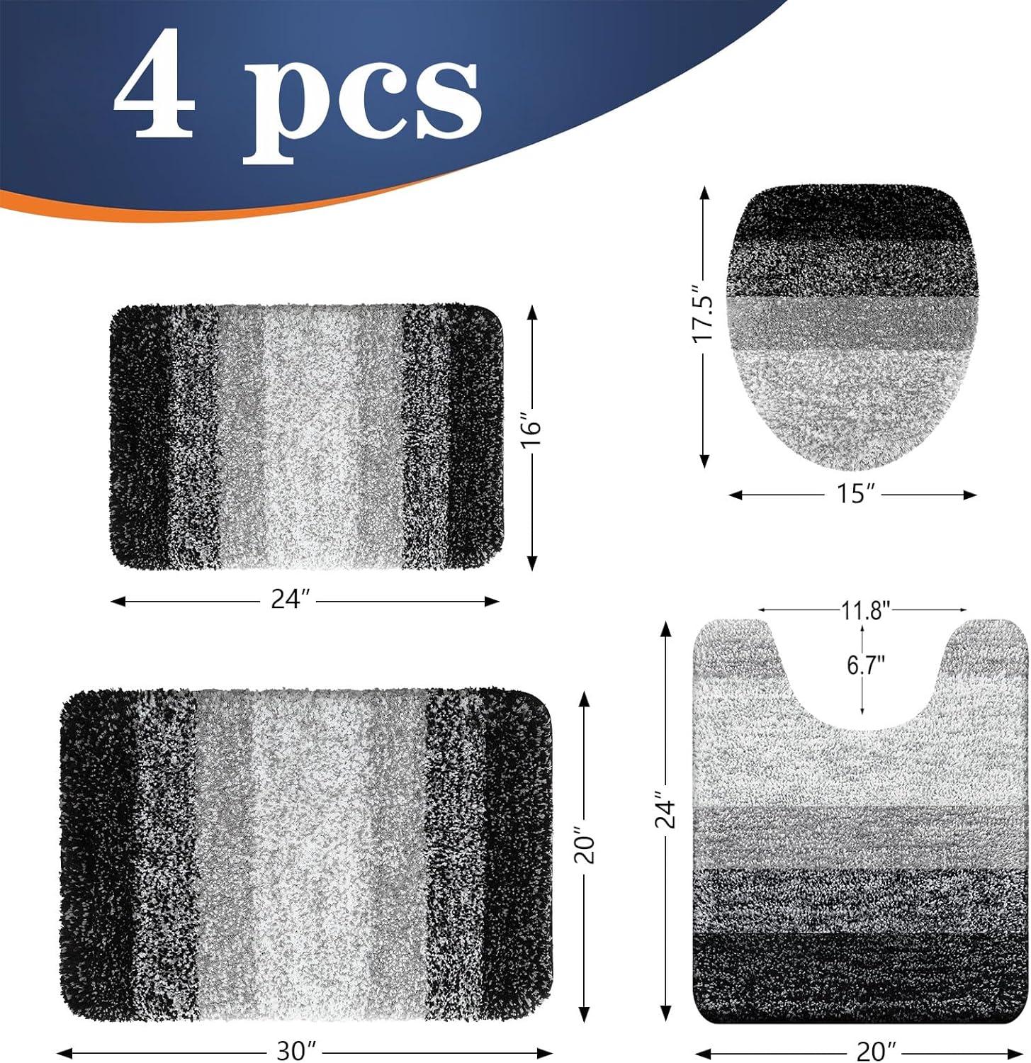 [Heavy Density Microfiber] This 4-piece set includes three bath mats and one toilet lid cover, both with nearly 1-inch plush pile. All pieces use premium microfiber with fiber-locking technology for exceptional softness underfoot and on toilet surfaces.