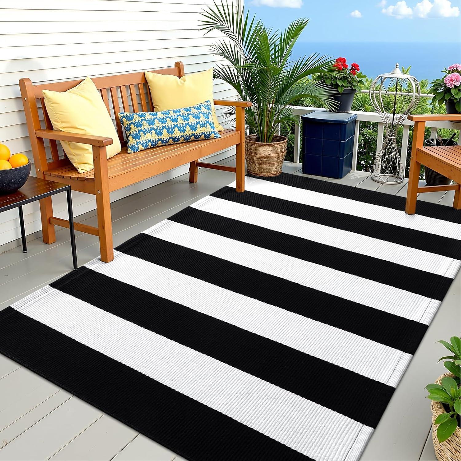[Outdoor Care Tips] Designed as a versatile indoor outdoor rug, this striped mat is suitable for patios, porches, or kitchens. For outdoor use, avoid prolonged exposure to rain, as moisture may damage the fabric. If the rug gets wet, promptly clean and dry it to maintain quality and extend its lifespan.
