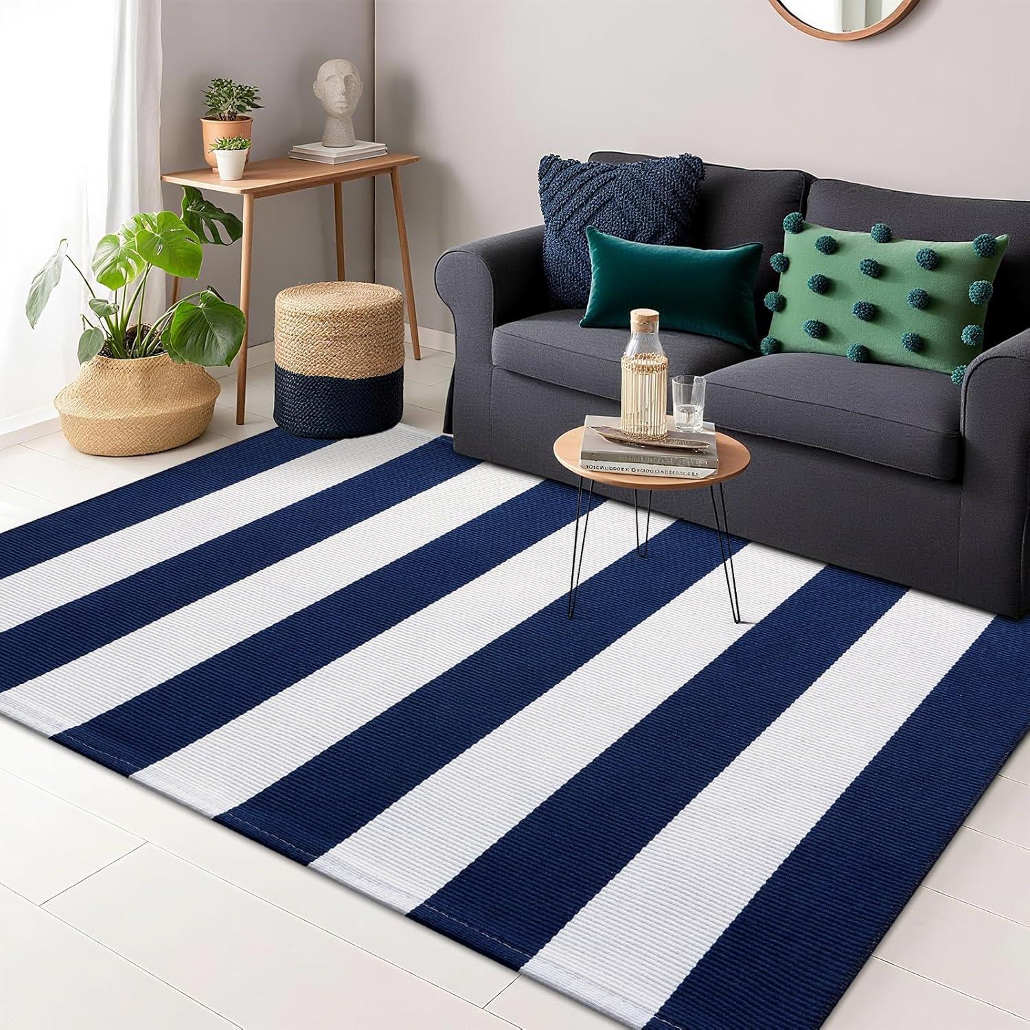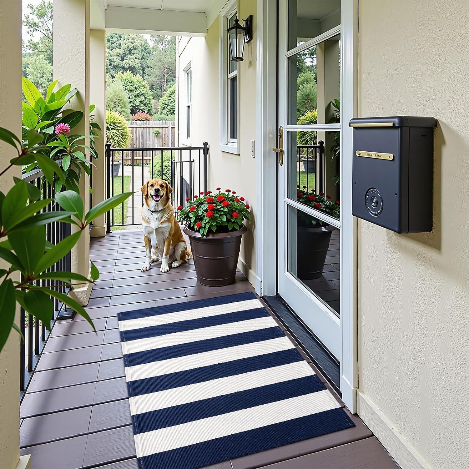 OLANLY Black and White Striped Rug 2'4" x 3'7" (27.5" x 43") – Washable Cotton Indoor Outdoor Doormat for Front Door, Entryway, Kitchen, Porch, Patio Decor(Navy and White)