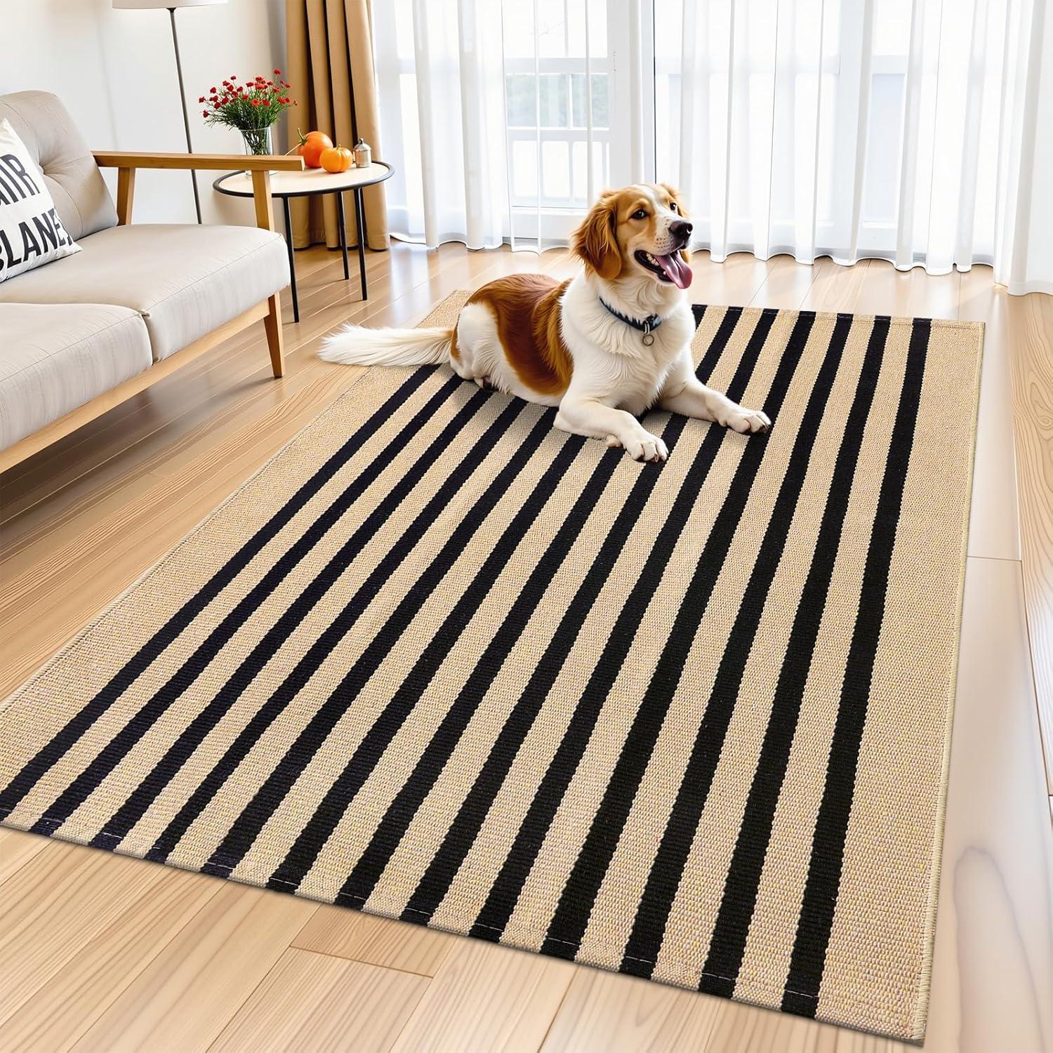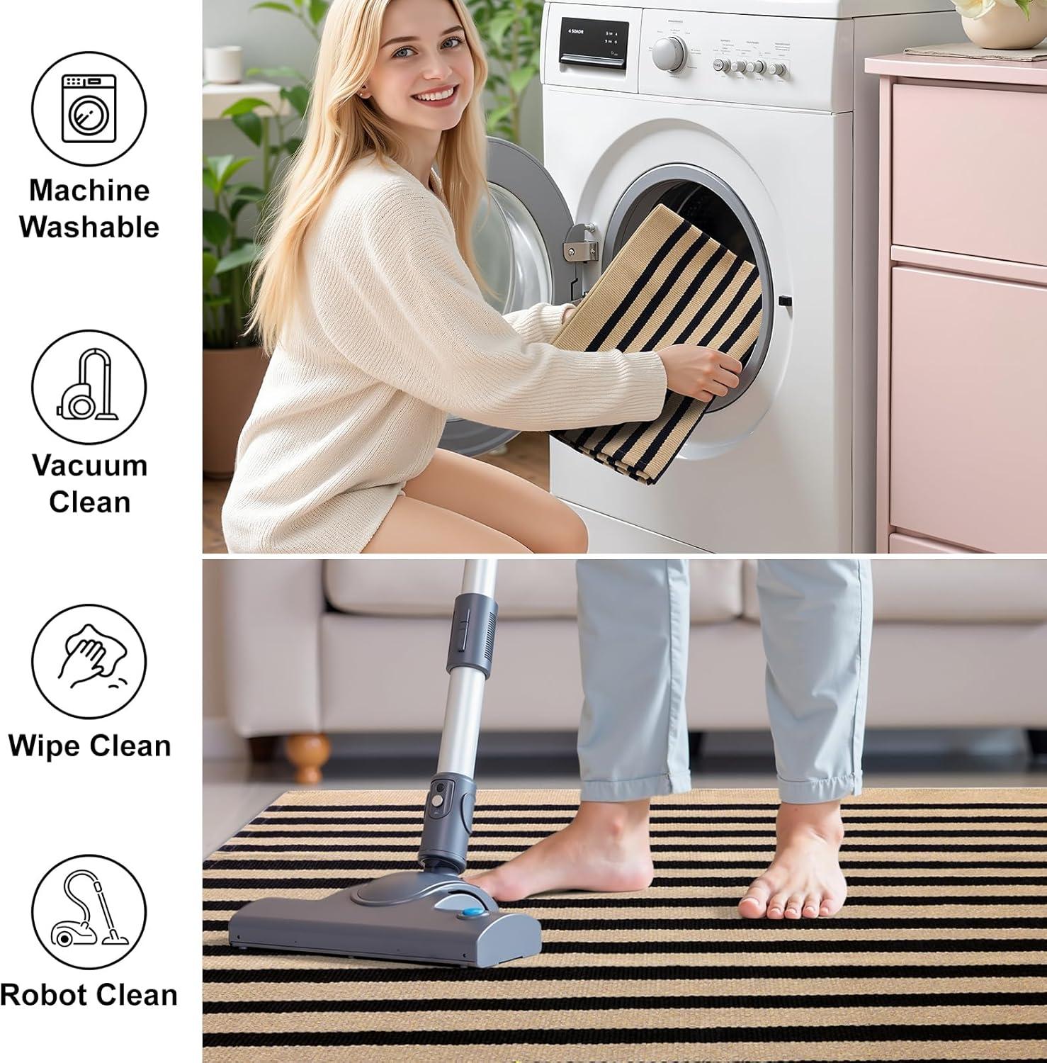 [Easy to Clean & Maintain] Keep your cotton blend striped rug fresh with minimal effort—vacuum or shake to remove dirt, or machine wash on a gentle cycle for deeper cleaning. Air dry or tumble dry on low to protect the fabric. Do not bleach. This easy-care farmhouse entry rug offers both practicality and timeless style.