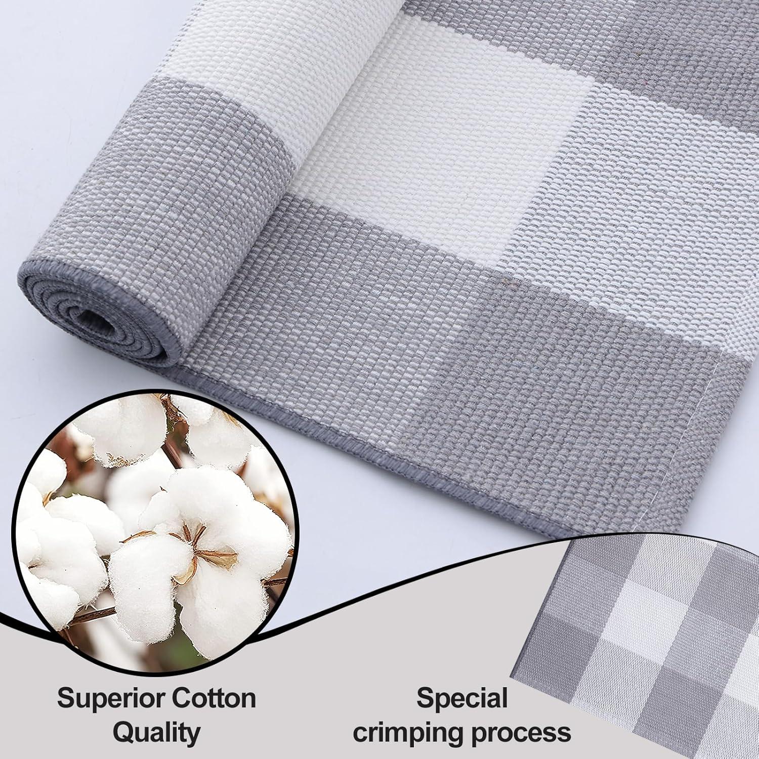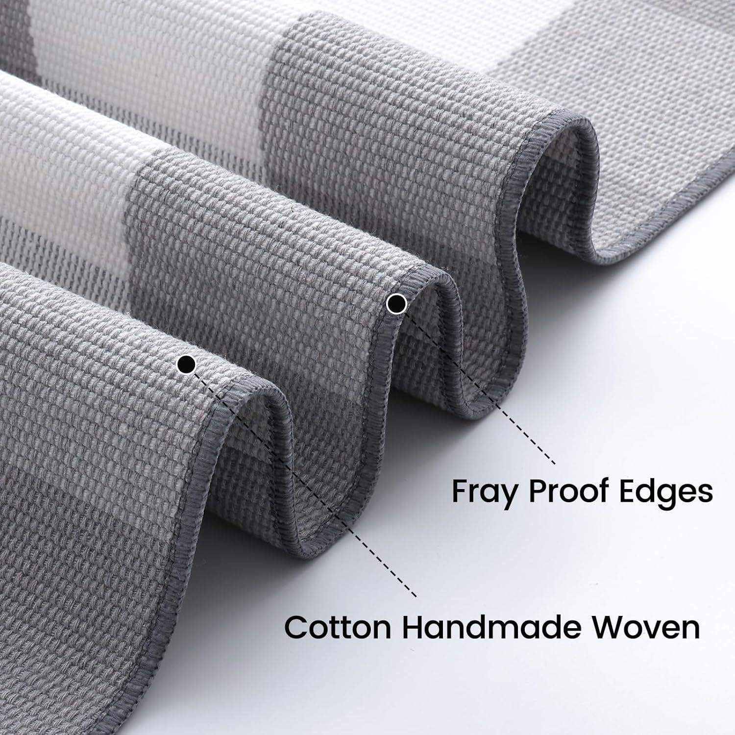 OLANLY Brown and Black Striped Rug 2' x 4'3" (24" x 51") – Washable Cotton Doormat for Indoor Outdoor Use, Layered Front Porch Rug for Entryway, Kitchen, Patio(Grey and White Checkered)
