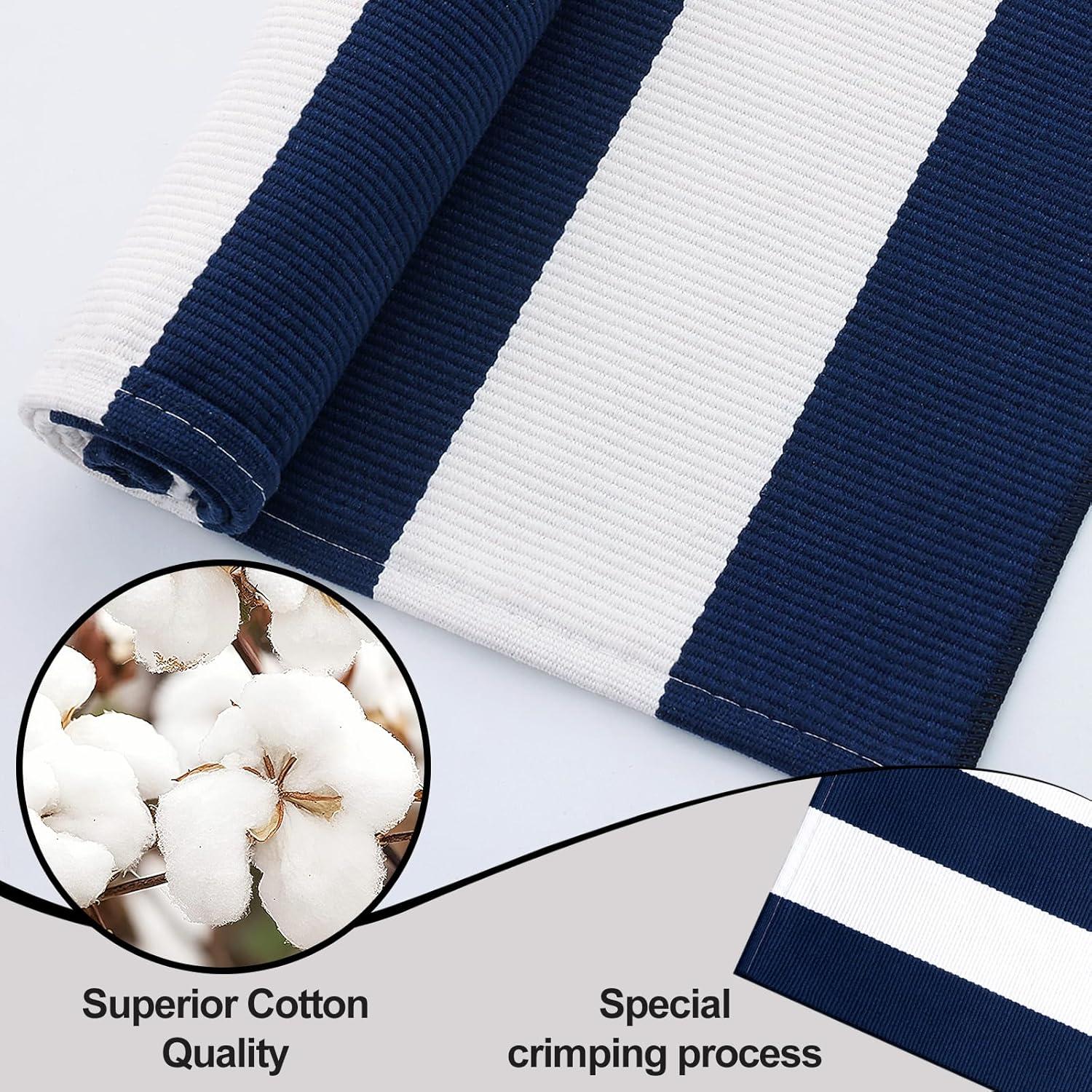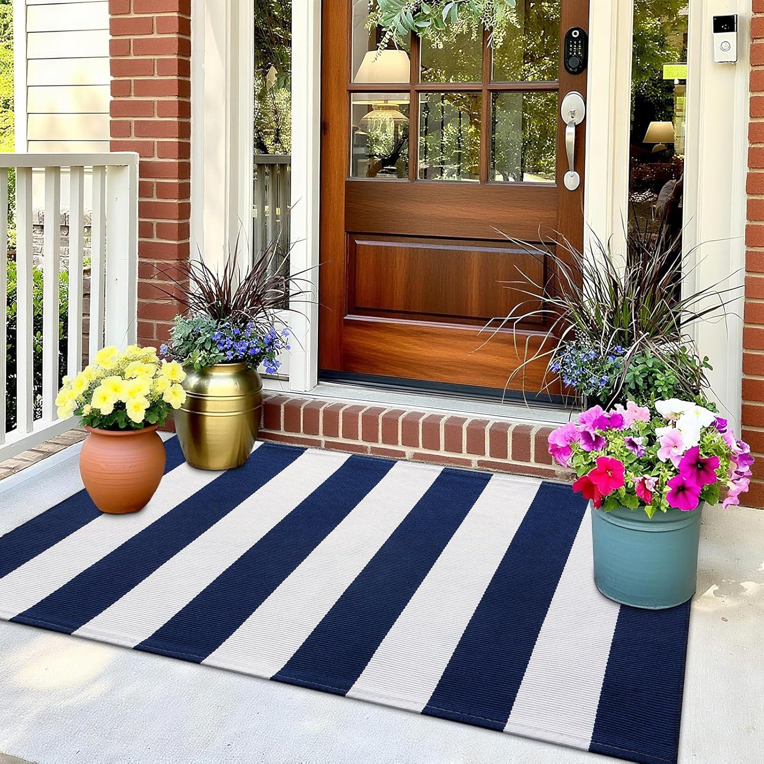 OLANLY Brown and Black Striped Rug 2' x 4'3" (24" x 51") – Washable Cotton Doormat for Indoor Outdoor Use, Layered Front Porch Rug for Entryway, Kitchen, Patio(Navy and White Striped)