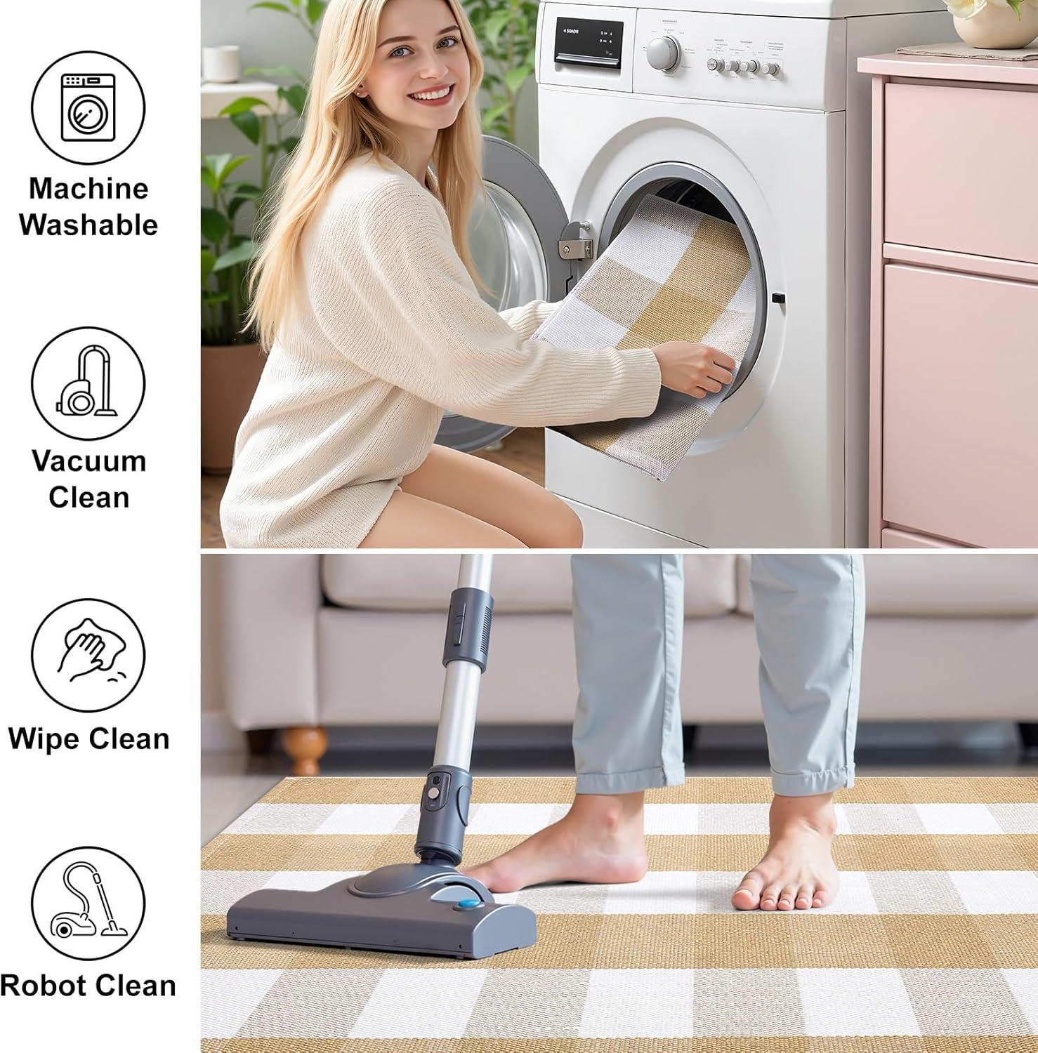 [Easy to Clean & Maintain] Keep your cotton blend plaid rug fresh with minimal effort—vacuum or shake to remove dirt, or machine wash on a gentle cycle for deeper cleaning. Air dry or tumble dry on low to protect the fabric. Do not bleach. This easy-care farmhouse entry rug offers both practicality and timeless style.