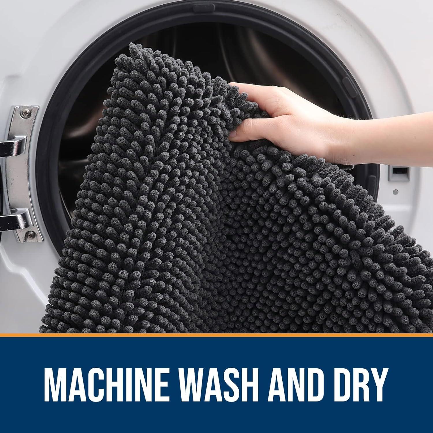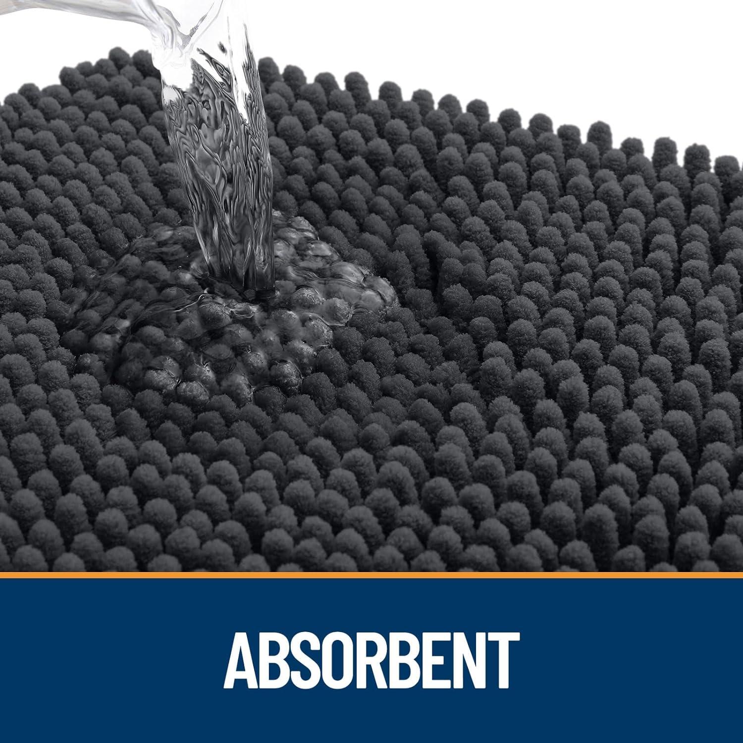OLANLY Dog Door Mat Set 2-Piece 30×20, Absorbs Moisture and Dirt, Absorbent Non-Slip Washable Doormat, Quick Dry Chenille Mud Mat for Dogs, Entry Indoor Entryway Carpet for Inside Floor, Grey(Dark Grey)