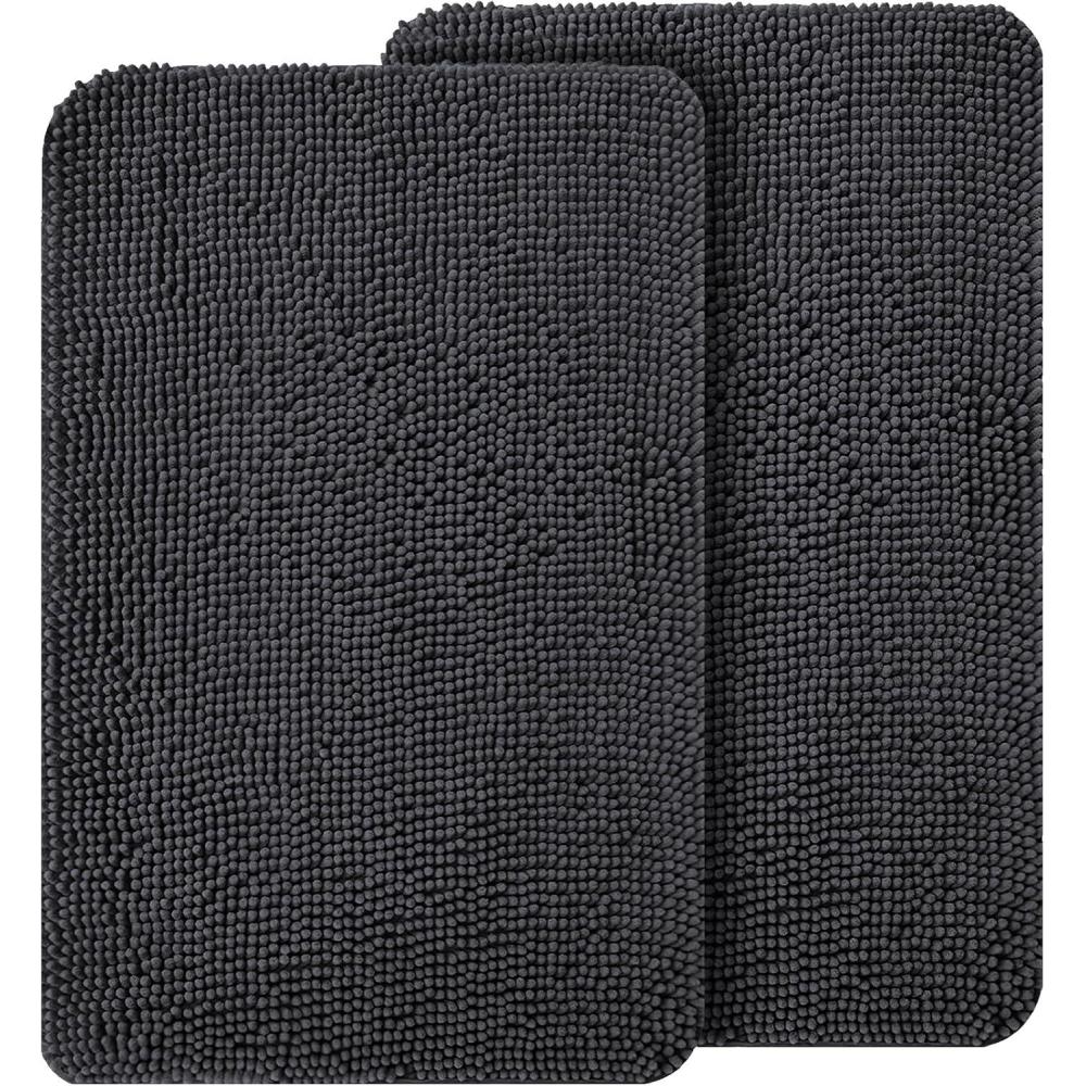 OLANLY Dog Door Mat Set 2-Piece 30x20, Absorbs Moisture and Dirt, Absorbent Non-Slip Washable Doormat, Quick Dry Chenille Mud Mat for Dogs, Entry Indoor Entryway Carpet for Inside Floor, Grey(Dark Grey)