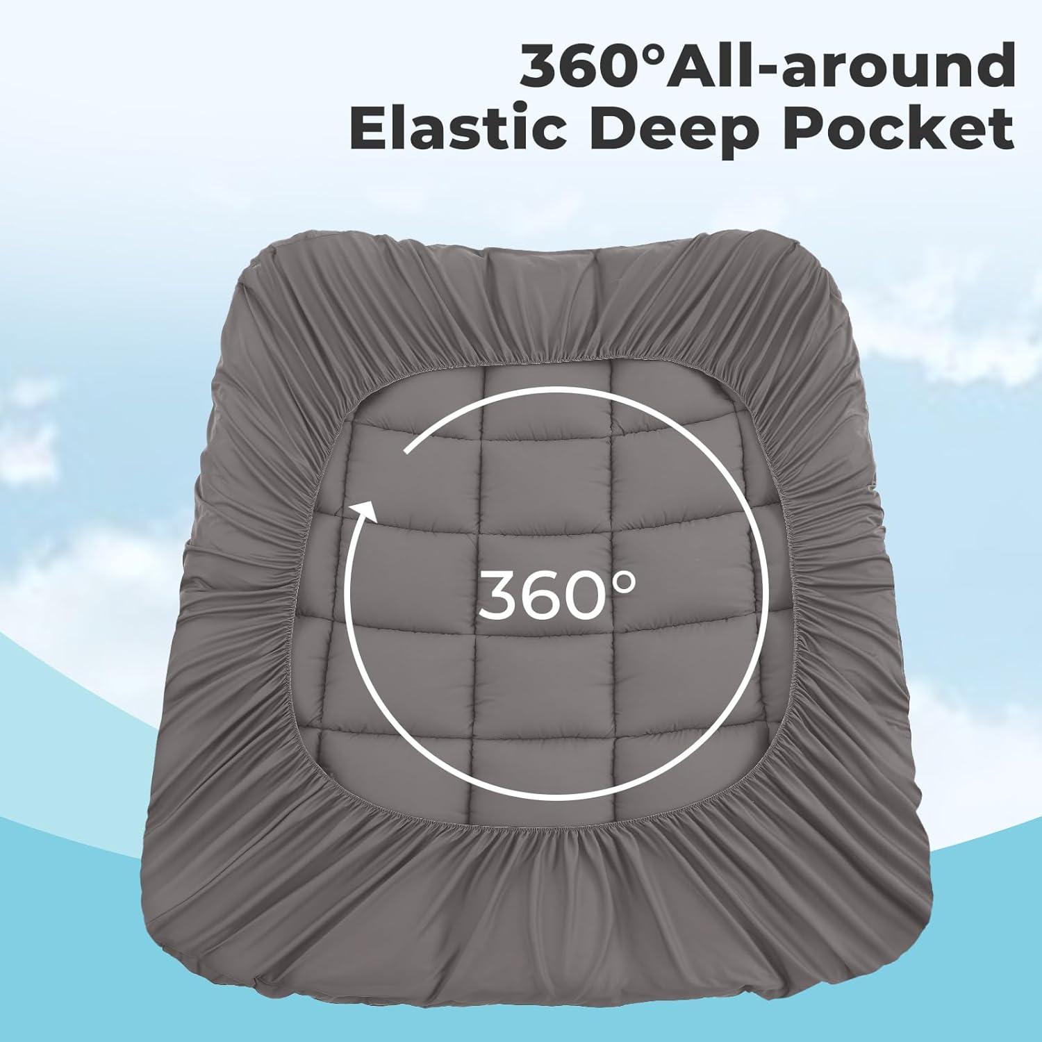 Snug Fit with Deep Pocket Skirt: The 360° elastic deep-pocket skirt hugs your king size mattress like a fitted sheet, accommodating beds up to 21 inches thick. Whether you're upgrading an old mattress or enhancing a new one, this mattress topper king size bed stays securely in place.