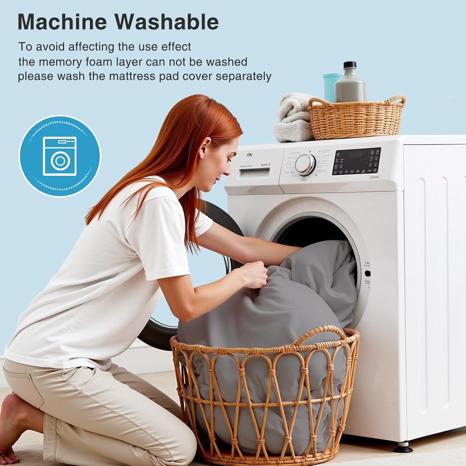 Easy Setup & Simple Maintenance: Designed for quick installation, simply unfold and smooth out for instant comfort—no tools required. The removable cover is machine washable for hassle-free cleaning, ensuring your king mattress topper stays fresh and durable with minimal effort.