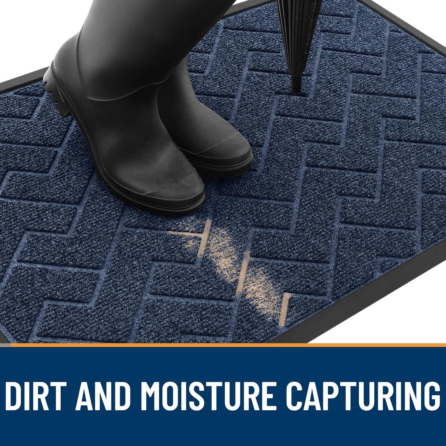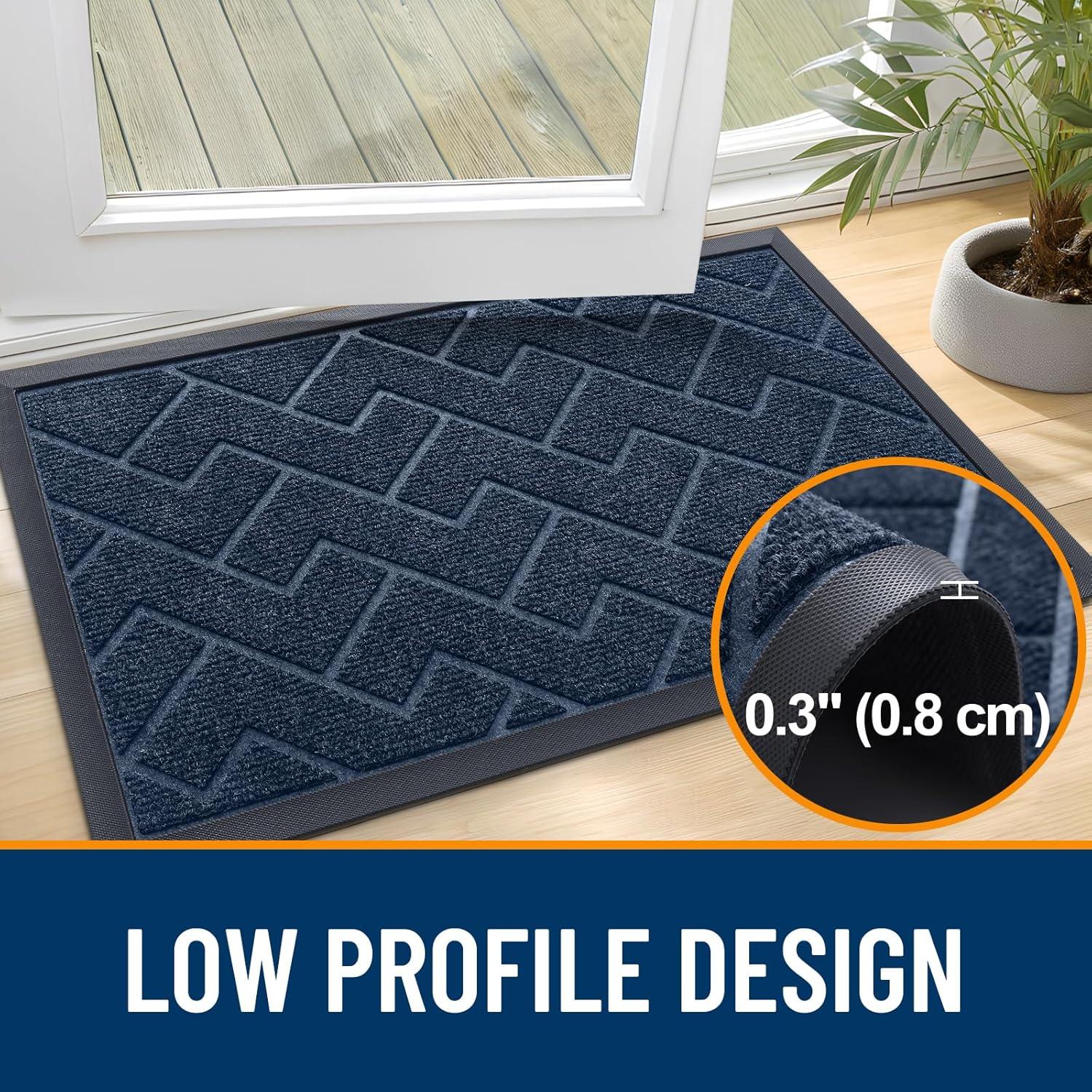 OLANLY Front Door Mat Indoor Outdoor Entrance, Waterproof All-Season, All-Weather Welcome Doormat, Sturdy Natural Rubber, Low Profile, Easy Clean Patio Porch Entryway Outside Floor Mat, 29.5x17, Black(Blue)