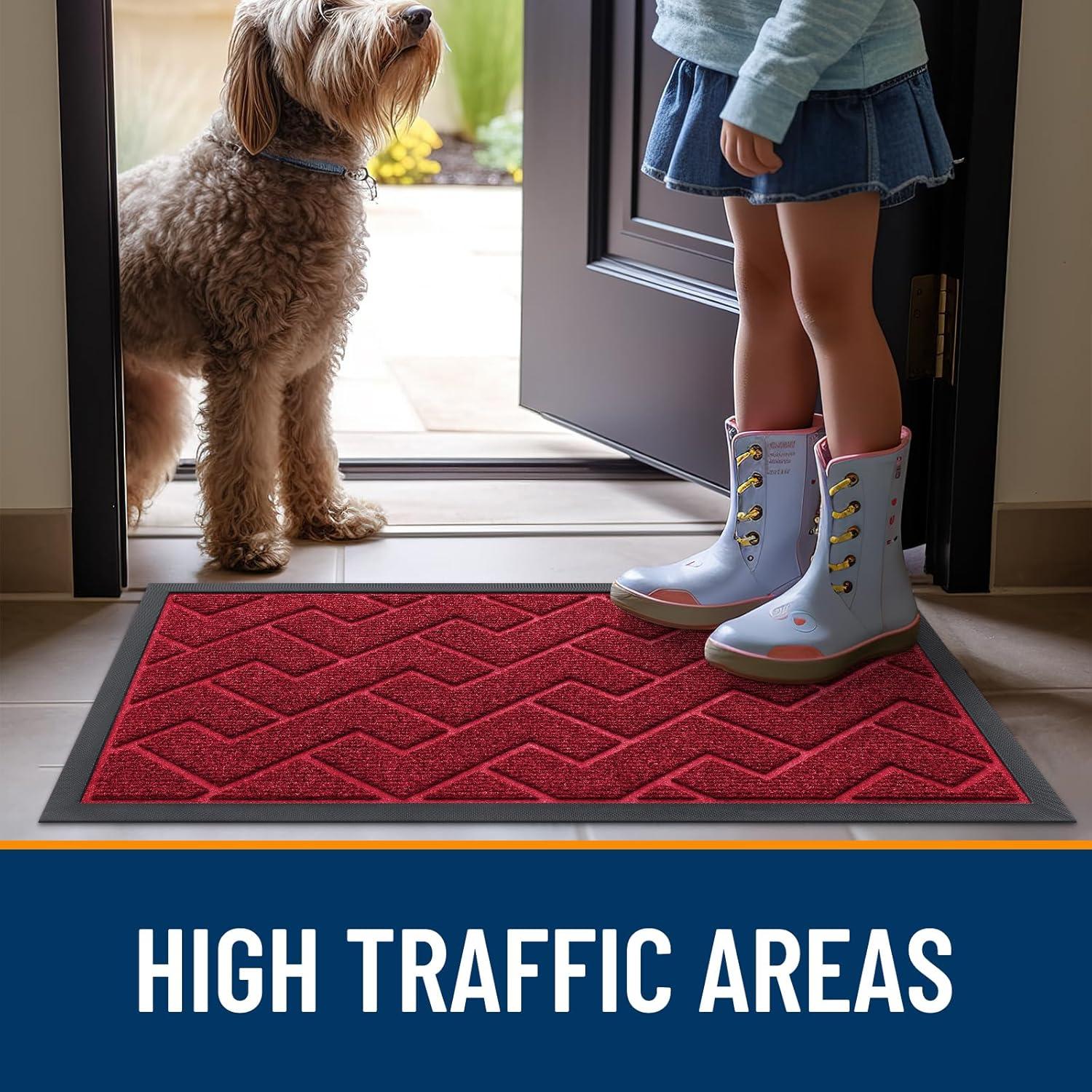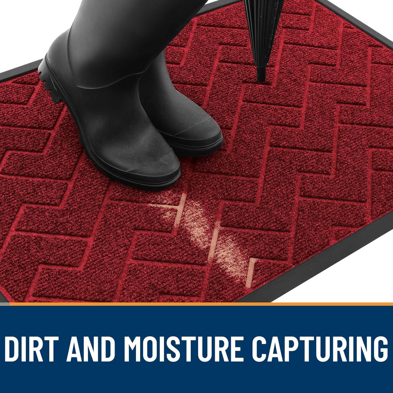 OLANLY Front Door Mat Indoor Outdoor Entrance, Waterproof All-Season, All-Weather Welcome Doormat, Sturdy Natural Rubber, Low Profile, Easy Clean Patio Porch Entryway Outside Floor Mat, 29.5x17, Black(Wine Red)