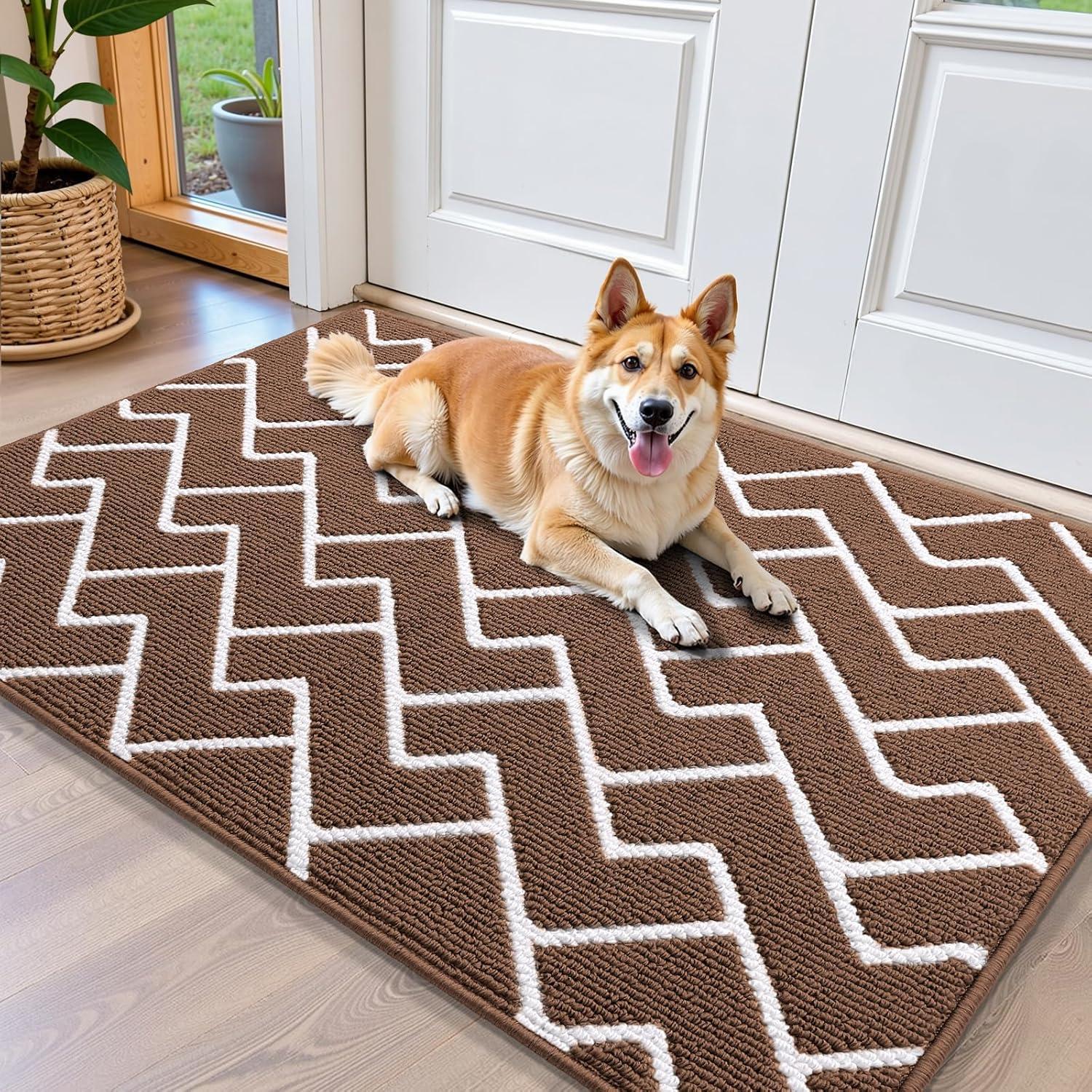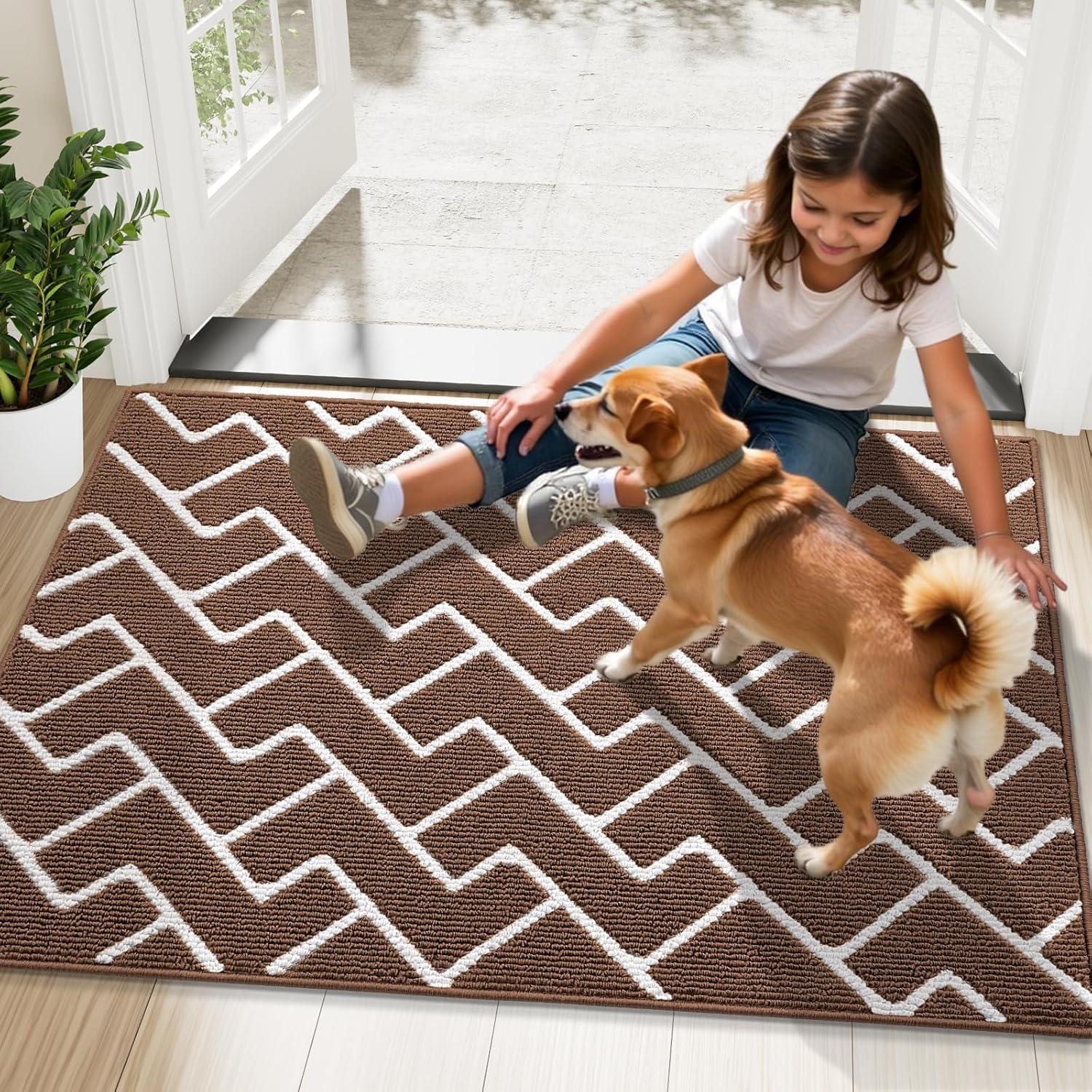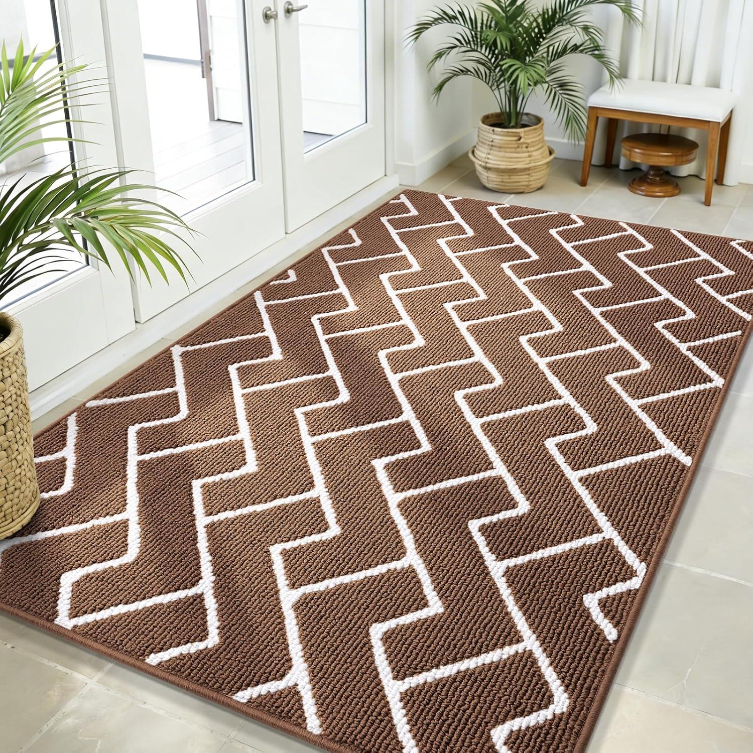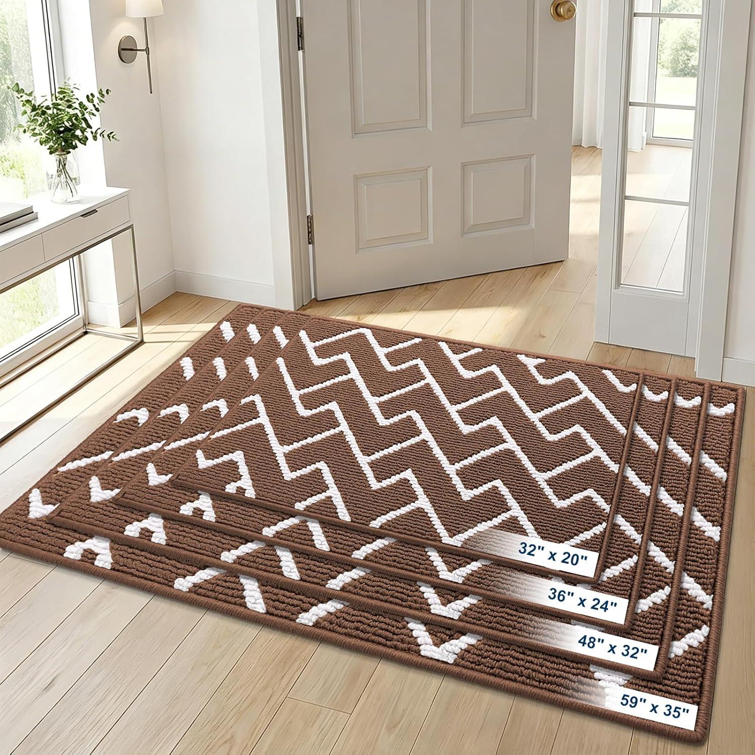 OLANLY Front Door Mat, Non-Slip Rubber Backing, Dirt Resistant and Absorbent, Washable, Easy to Clean Low-Profile Indoor Doormat for Back Door, Entryway, Inside Entrance, 32x20, Grey(Coffee)