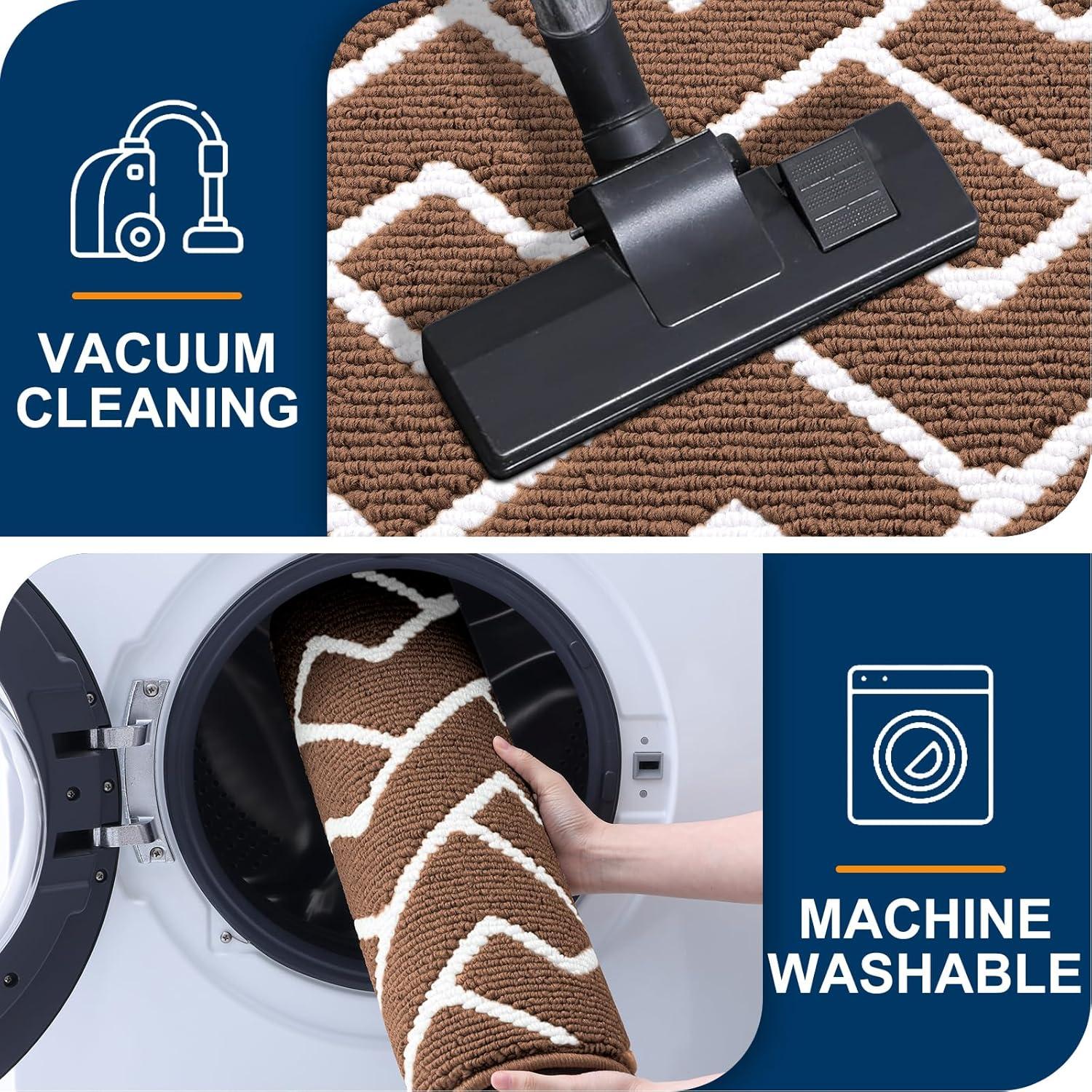 [EASY CARE AND VERSATILE USE] Keep the floor mat fresh with simple cleaning: shake off debris outdoors or use a broom or vacuum. For thorough cleaning, rinse with a hose or machine wash in cold water. Ideal for indoor entrances, kitchens, patios, and more, OLANLY's indoor entry mat combines style and function, withstanding daily wear and tear while maintaining its fresh look over time.