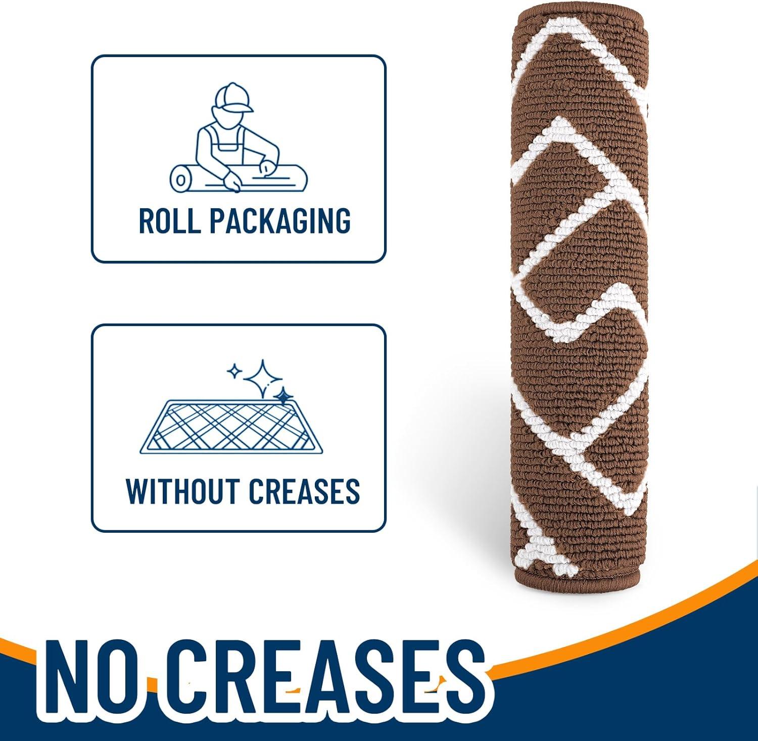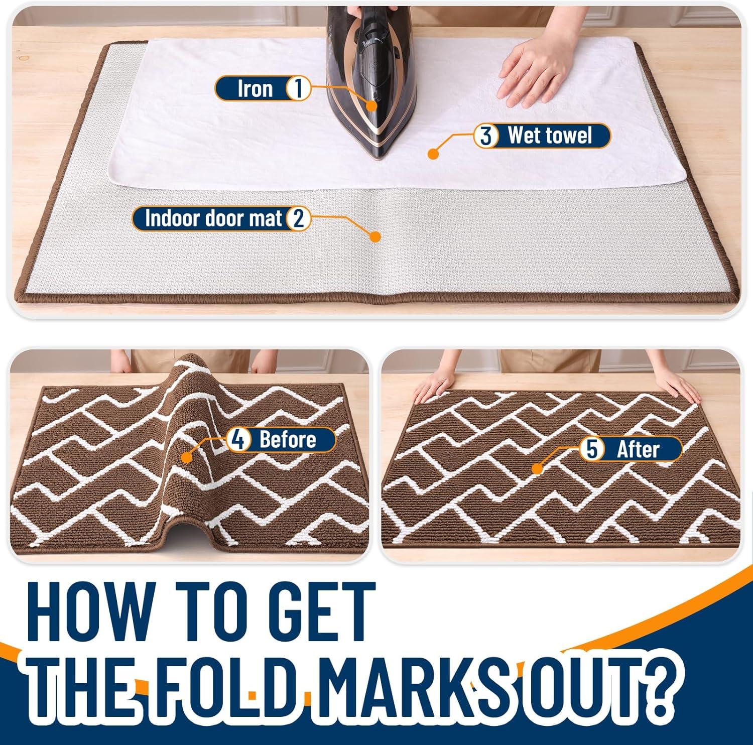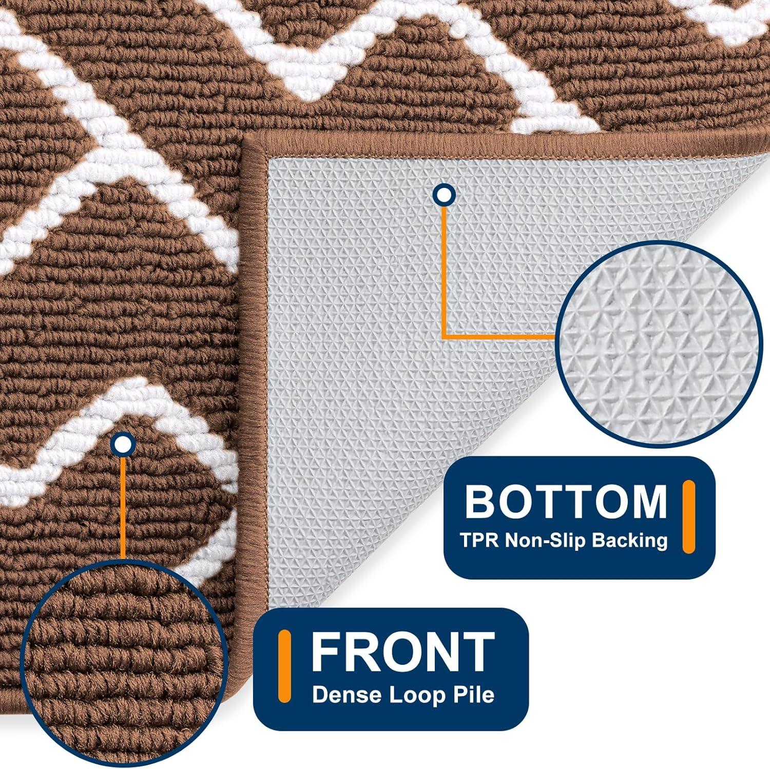 [STURDY BACKING FOR FIRM GRIP] The textured TPR rubber backing keeps this door mat indoor entrance firmly positioned on your floor. It maintains its place even in active entryways. Please fully open the rug and place it on a flat, dry floor to prevent the doormat from sliding during use.