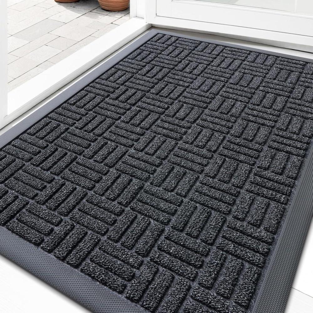 OLANLY Front Door Mat Outside Entrance 29x17, Absorbent, Heavy Duty Sturdy Natural Rubber Doormat Indoor Outdoor, Stain and Fade Resistant, Non-Slip Backing Low Profile Floor Mat for Entryway, Grey(Black Gray)