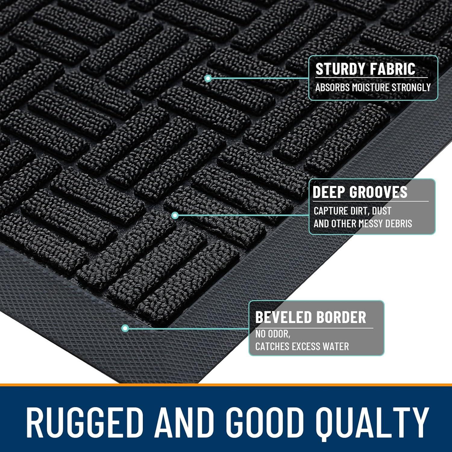 OLANLY Front Door Mat Outside Entrance 29x17, Absorbent, Heavy Duty Sturdy Natural Rubber Doormat Indoor Outdoor, Stain and Fade Resistant, Non-Slip Backing Low Profile Floor Mat for Entryway, Grey(Black)