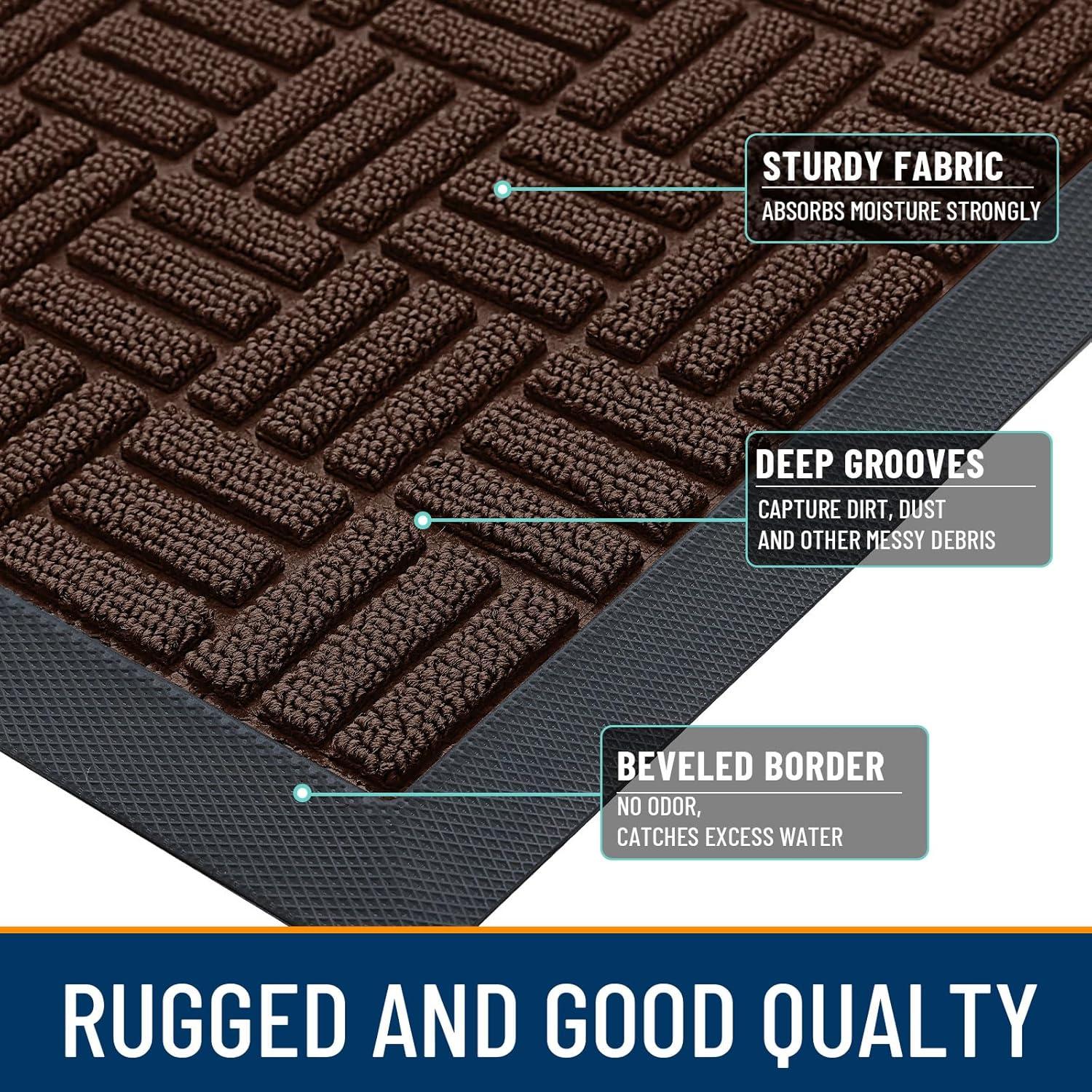 OLANLY Front Door Mat Outside Entrance 29×17, Absorbent, Heavy Duty Sturdy Natural Rubber Doormat Indoor Outdoor, Stain and Fade Resistant, Non-Slip Backing Low Profile Floor Mat for Entryway, Grey(Brown)