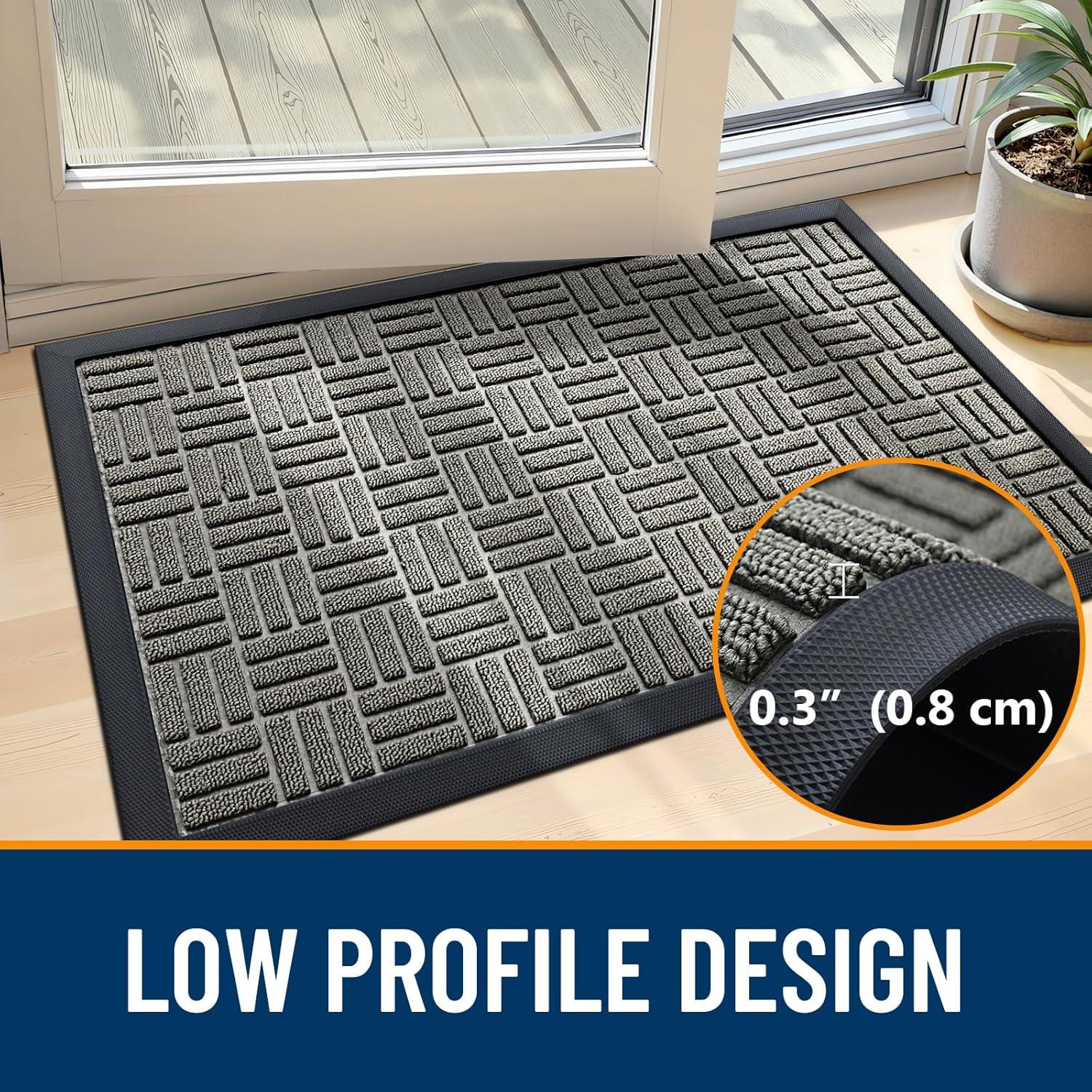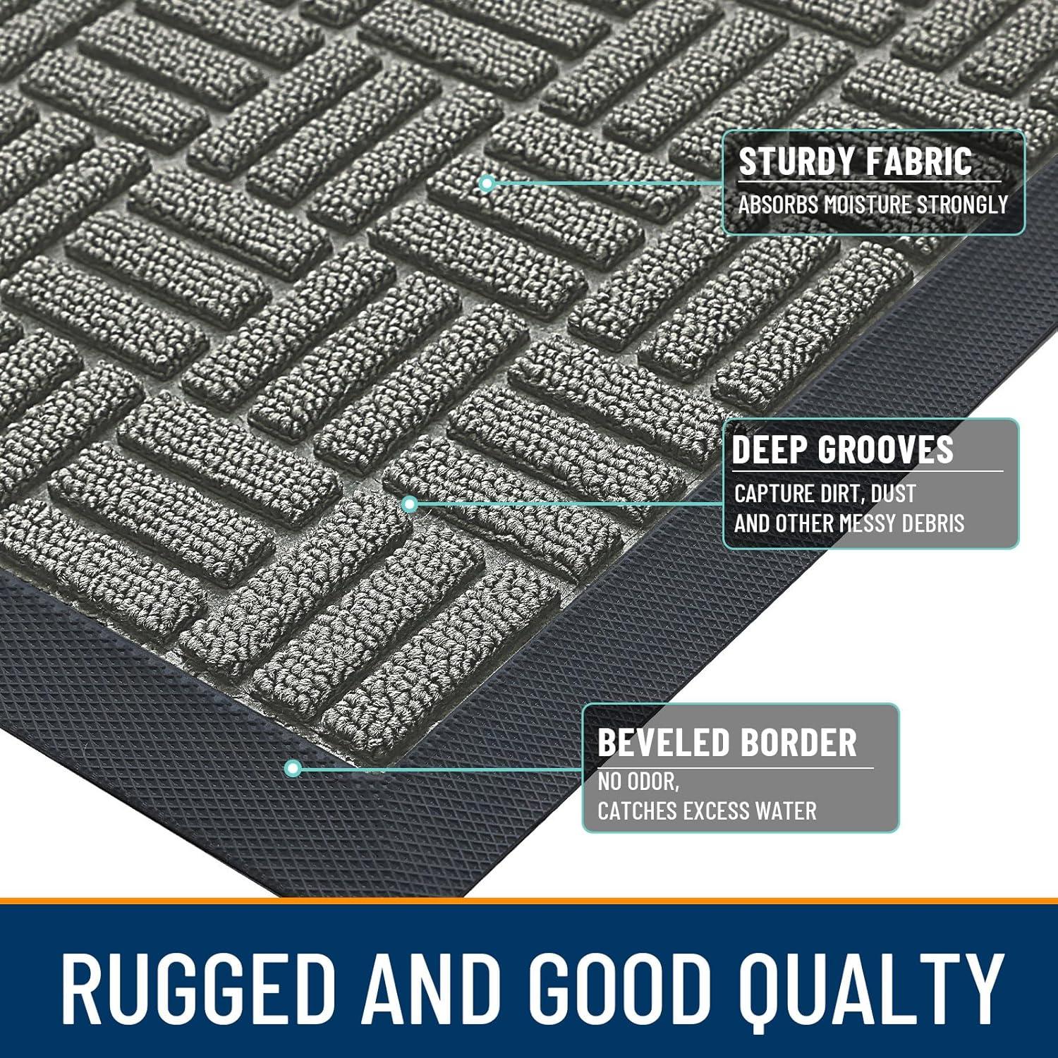 OLANLY Front Door Mat Outside Entrance 29×17, Absorbent, Heavy Duty Sturdy Natural Rubber Doormat Indoor Outdoor, Stain and Fade Resistant, Non-Slip Backing Low Profile Floor Mat for Entryway, Grey(Grey)