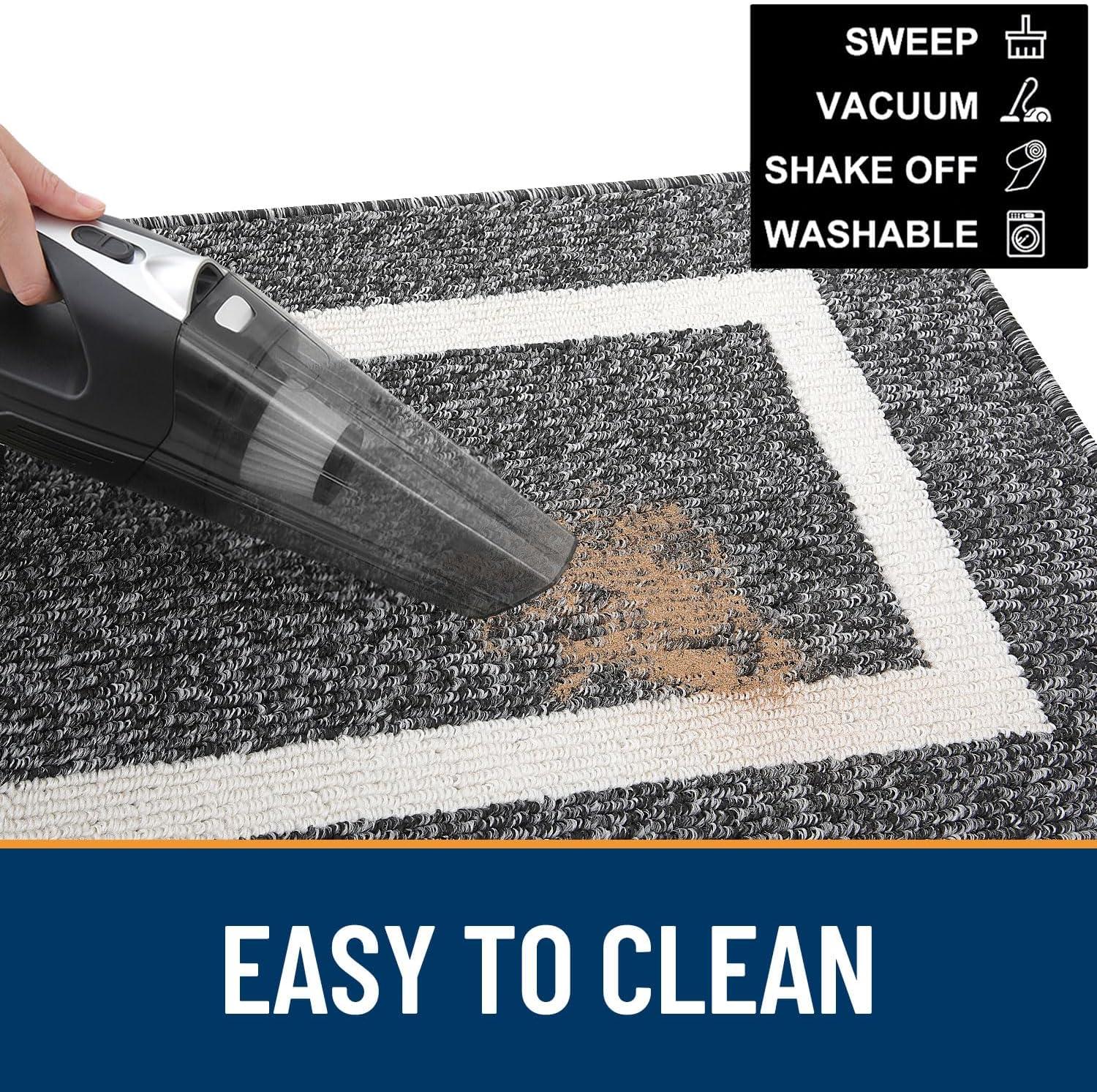 [EFFORTLESS ELEGANCE] OLANLY's door mat features a slim 0.4-inch profile complemented by reinforced overlock edges, presenting a chic and streamlined aesthetic. The considerate design guarantees smooth door operation while keeping the mat securely in place. Cleaning is a breeze – a quick shake, a sweep with a broom, or a pass with a handheld vacuum maintains its fresh appearance. For a deeper clean, toss it in the washing machine with cold water and tumble dry on low heat.