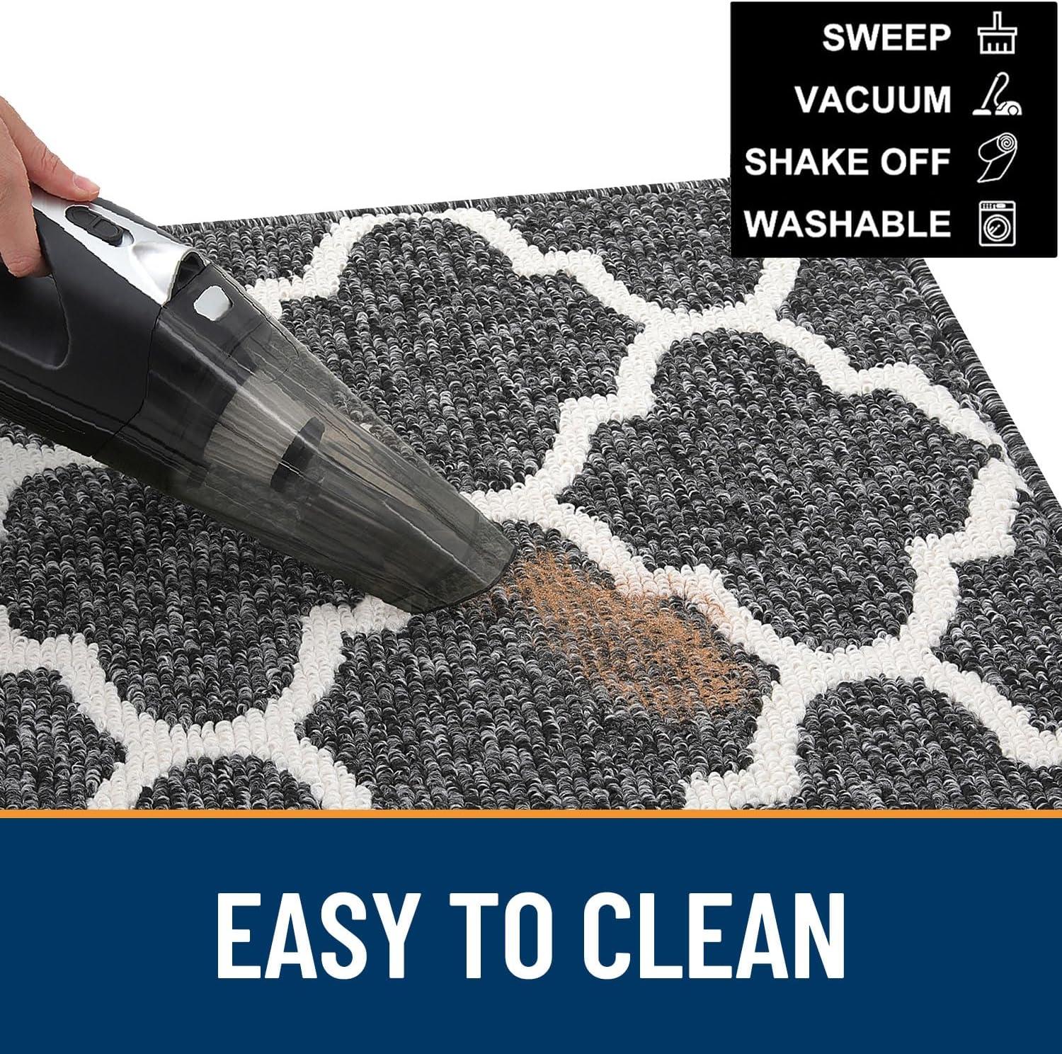 [EFFORTLESS ELEGANCE] OLANLY's door mat features a slim 0.4-inch profile complemented by reinforced overlock edges, presenting a chic and streamlined aesthetic. The considerate design guarantees smooth door operation while keeping the mat securely in place. Cleaning is a breeze – a quick shake, a sweep with a broom, or a pass with a handheld vacuum maintains its fresh appearance. For a deeper clean, toss it in the washing machine with cold water and tumble dry on low heat.