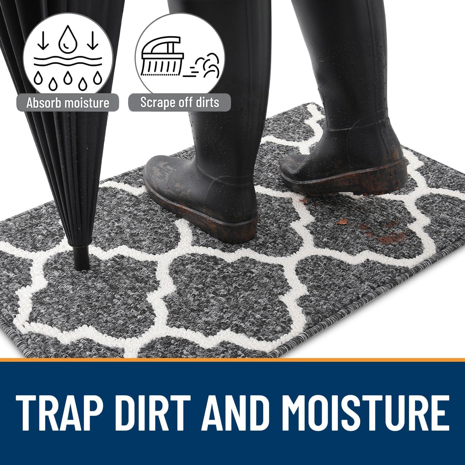 [CAPTURES DIRT AND MOISTURE] Step into comfort with OLANLY's indoor door mat. Crafted to effectively capture dirt and rapidly absorb moisture, this mat is perfect for your entryway. Ensure your shoes are promptly rid of water, dust, grit, muck, sand, and more. Elevate your entrance with OLANLY's versatile doormat.