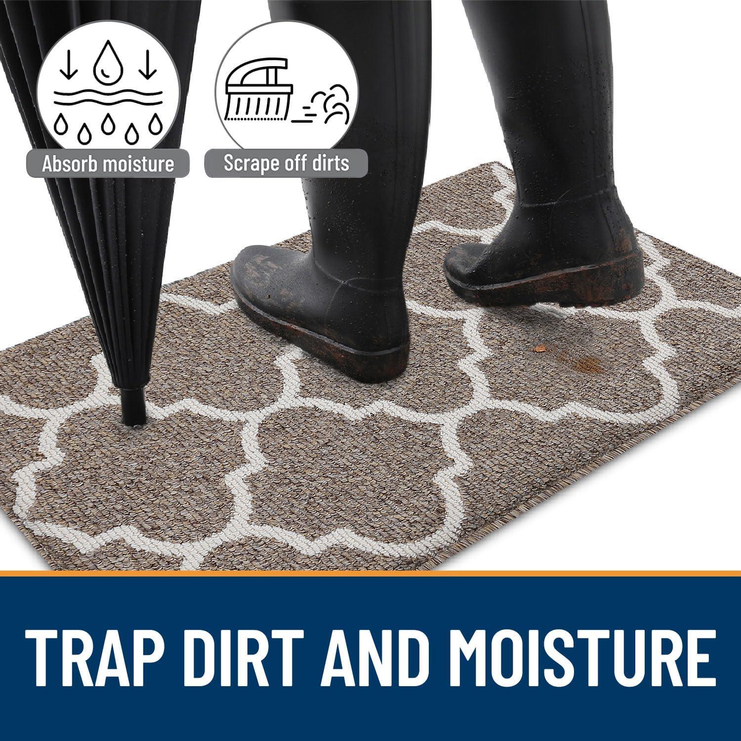 [CAPTURES DIRT AND MOISTURE] Step into comfort with OLANLY's indoor door mat. Crafted to effectively capture dirt and rapidly absorb moisture, this mat is perfect for your entryway. Ensure your shoes are promptly rid of water, dust, grit, muck, sand, and more. Elevate your entrance with OLANLY's versatile doormat.