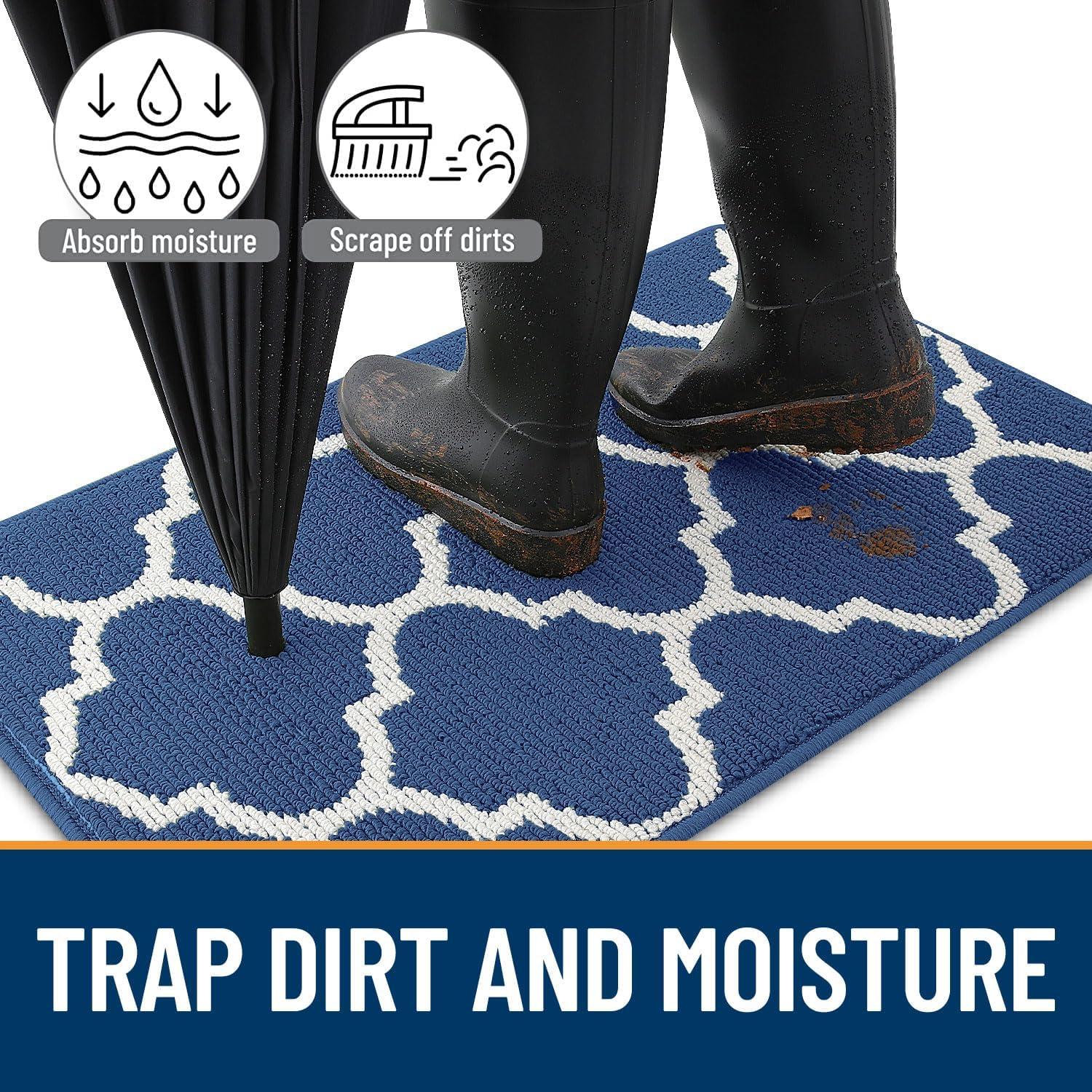 OLANLY Indoor Door Mat, 30×17, Non-Slip Absorbent Resist Dirt Entrance Mat, Washable Low-Profile Inside Floor Doormats for Entryway, Brown(Navy)
