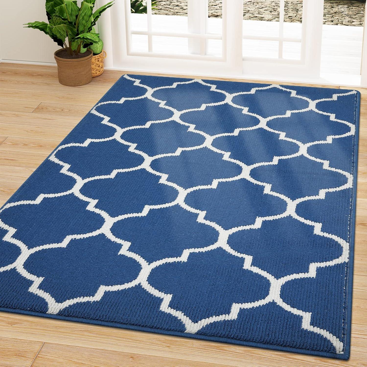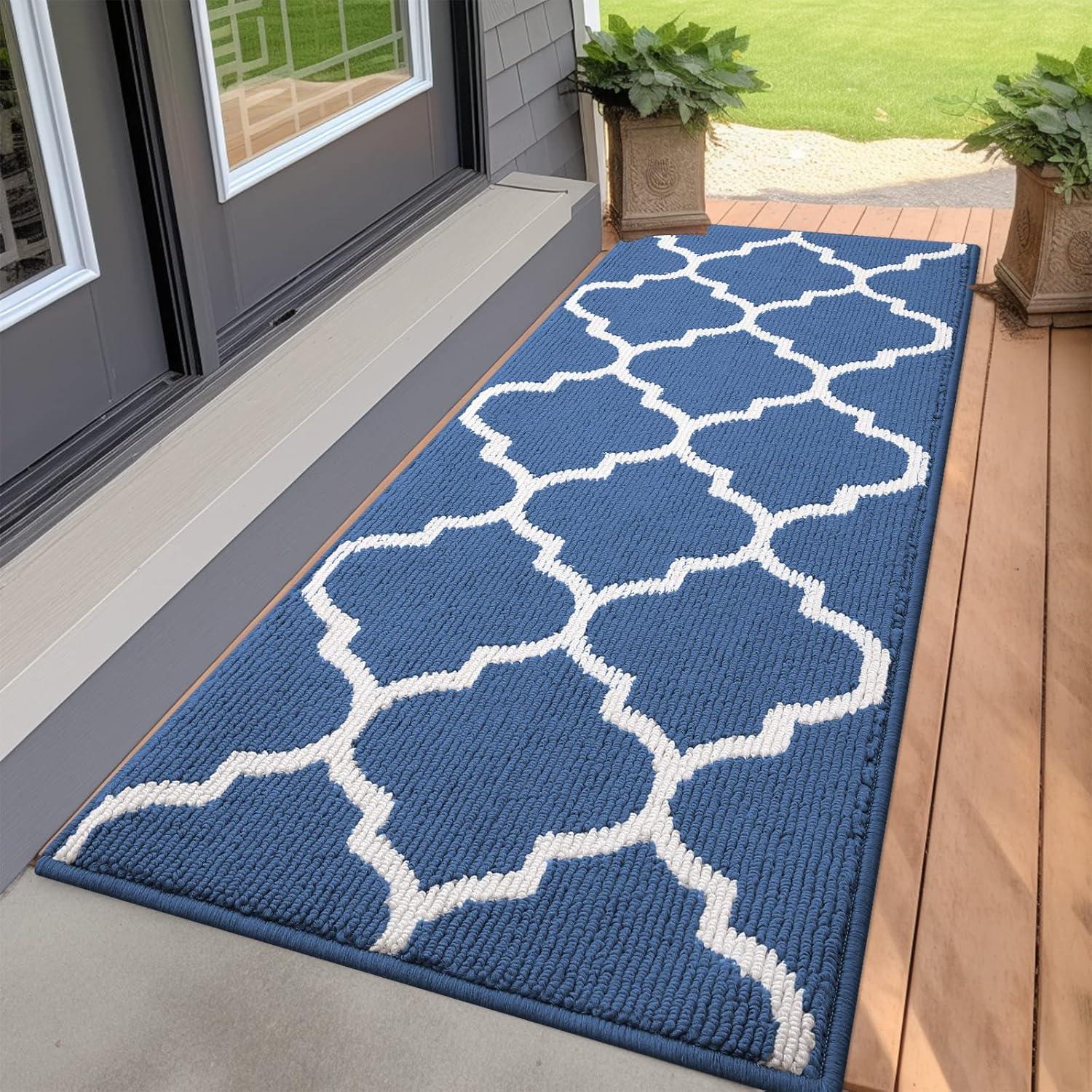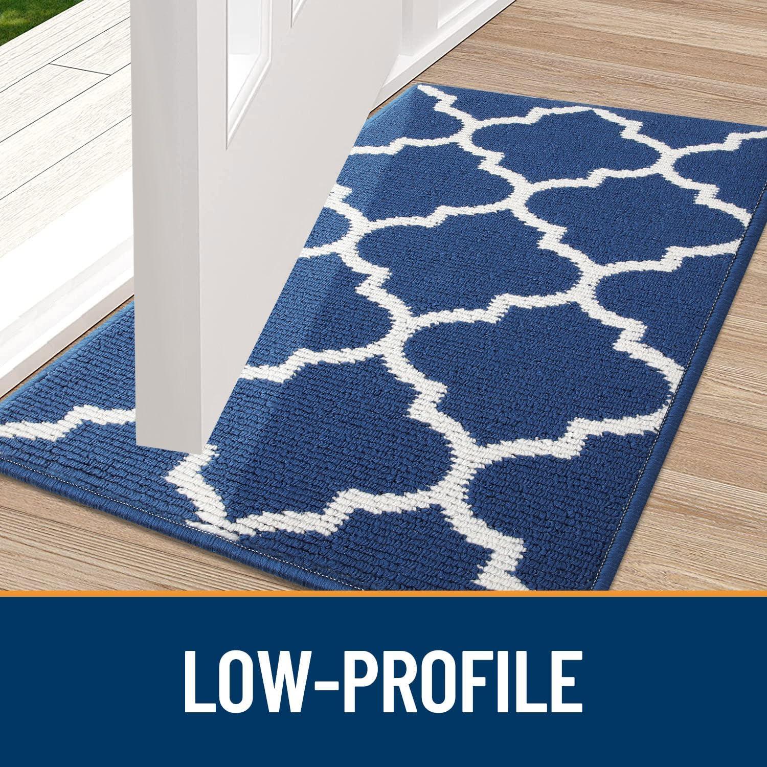 OLANLY Indoor Door Mat, 30x17, Non-Slip Absorbent Resist Dirt Entrance Mat, Washable Low-Profile Inside Floor Doormats for Entryway, Brown(Navy)