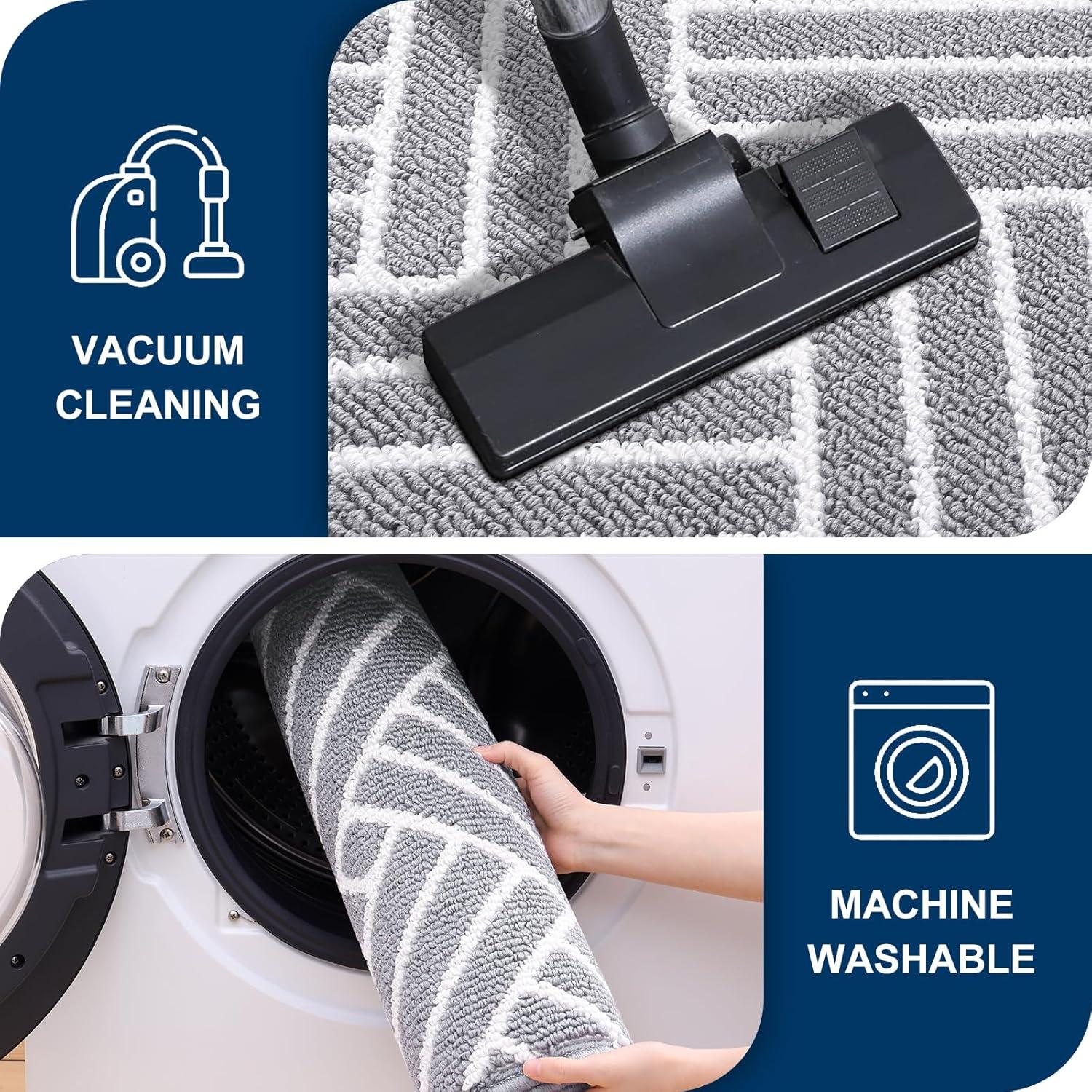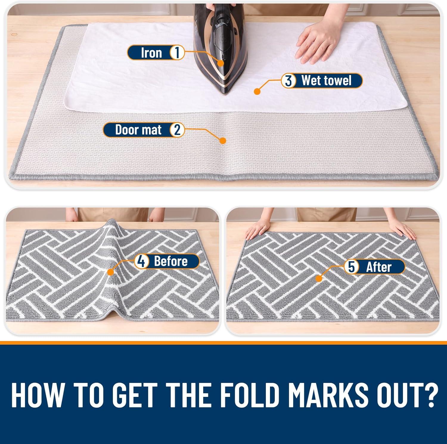 [EASY CLEANING AND MAINTENANCE]: Cleaning the indoor entrance mat is simple and hassle-free. Easily shake off dirt, or use a broom or vacuum for regular cleaning. For a deeper clean, simply rinse it with a hose or machine wash with cold water.