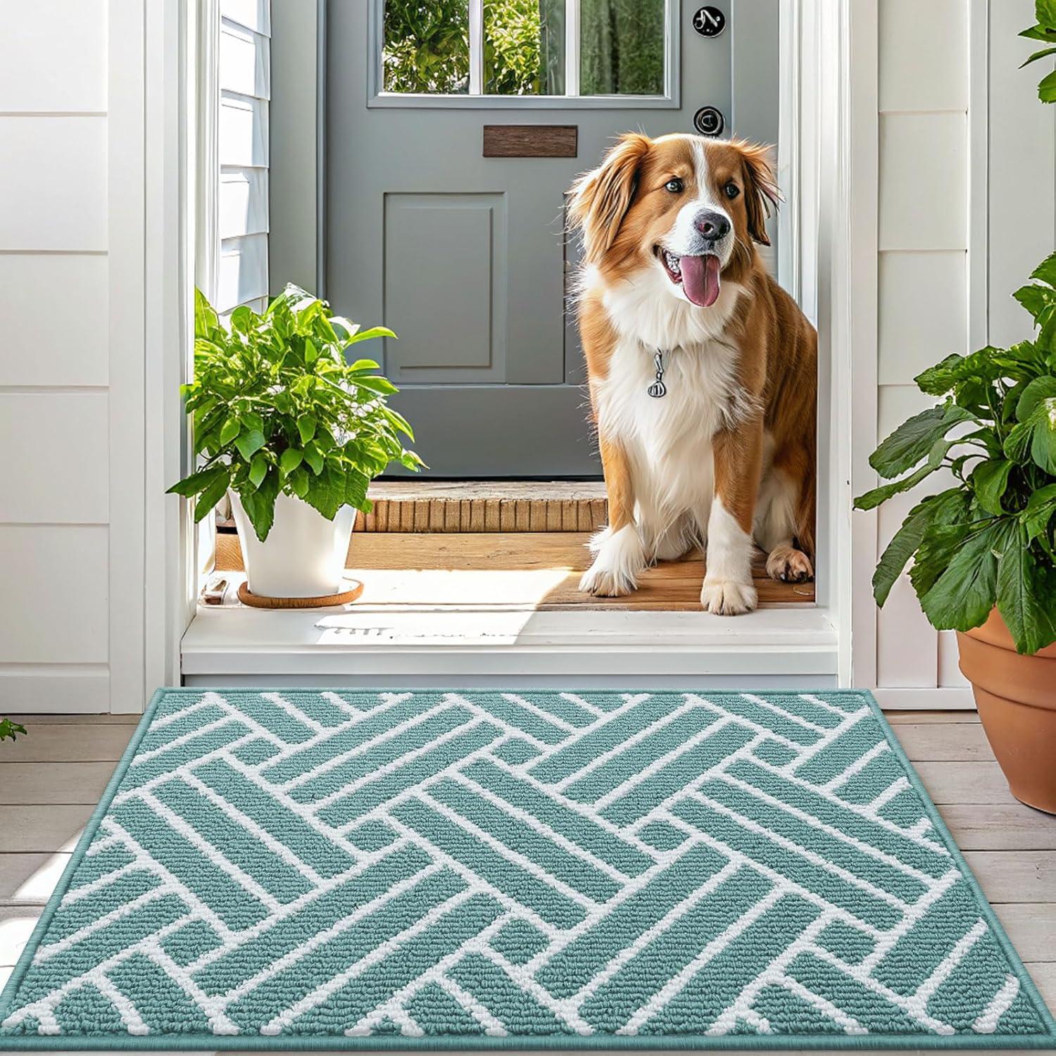 OLANLY Indoor Door Mat, 32×20 Inch, Dirt Resistant and Absorbent, Non-Slip Rubber Backing Floor Mats, Easy Clean Low-Profile Doormat for Entryway, Front Door, and Inside Entrance, Khaki(Sage Green)