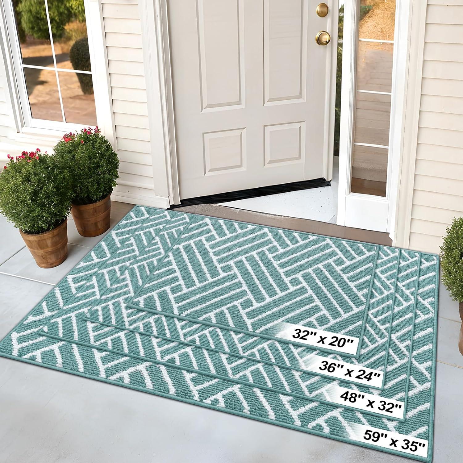 [LOW-PROFILE DESIGN]: With a sleek geometric pattern, this mat adds a modern touch to your home. Its low-profile design ensures it fits smoothly under your door without obstructing movement, making it the ideal doormat to elevate your home's aesthetic.
