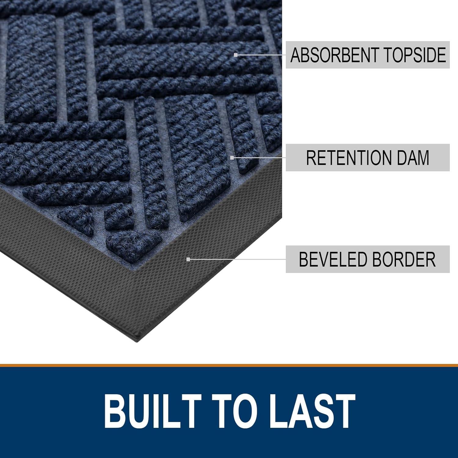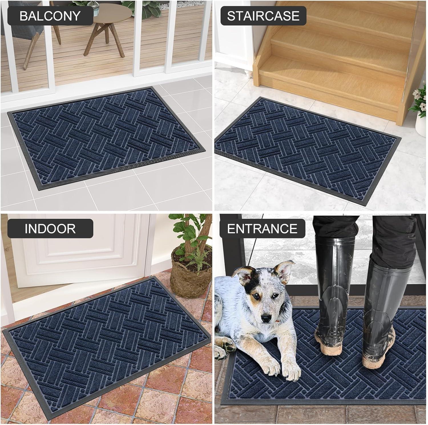 OLANLY Indoor Outdoor Mat, Sturdy Natural Rubber Floor Mat, Non Slip Low Profile Waterproof Doormat, and Stain Front Door Mats, Easy Clean Patio Entrance Mat, 30''x17'', Black(Navy)