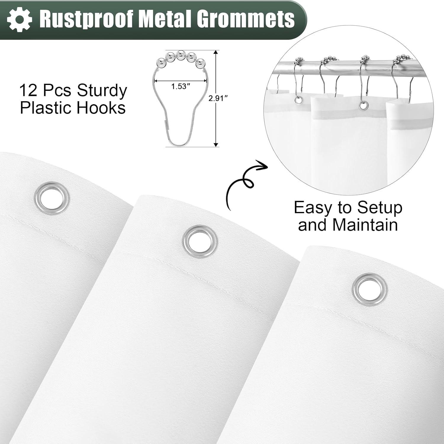 Easy to Install: Equipped with 12 rust-resistant grommets and 12 hooks, our shower curtain ensures effortless installation, allowing you to hang it securely in place without any hassle or frustration.