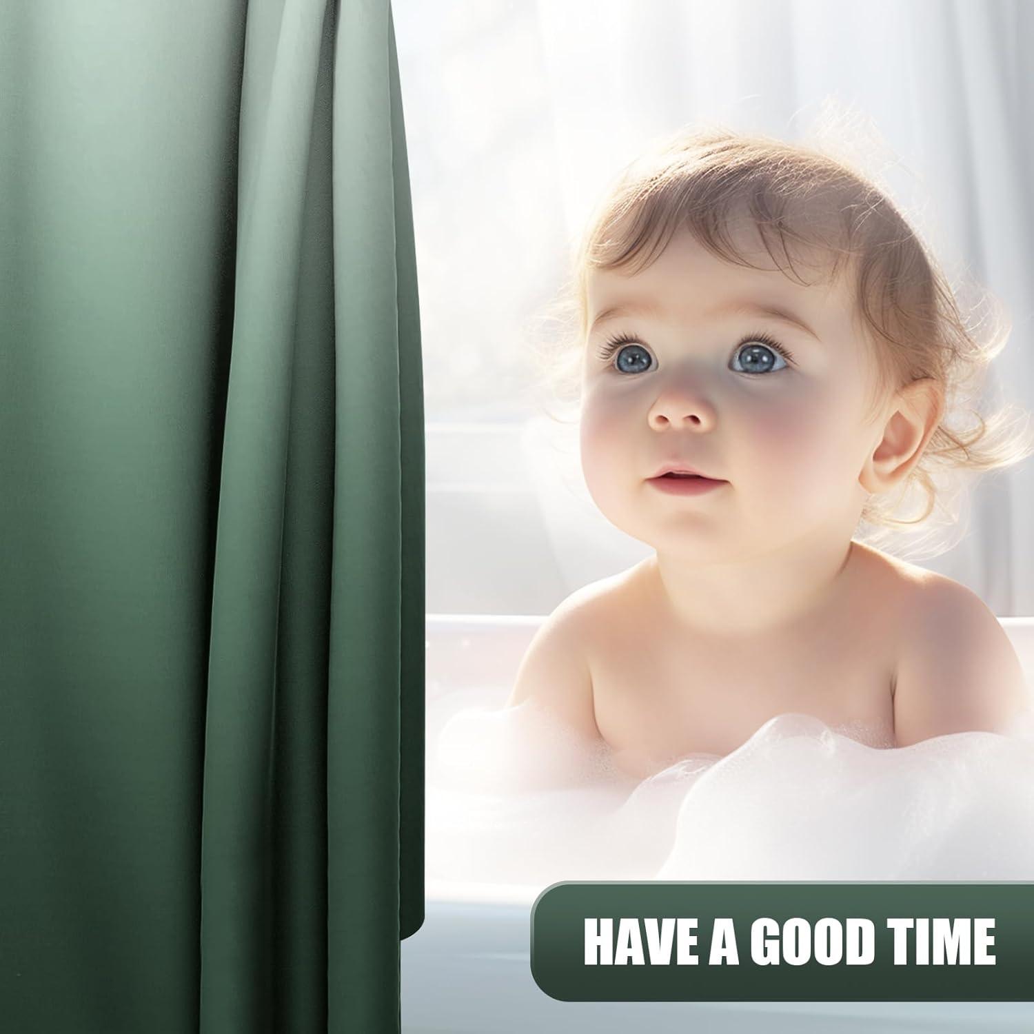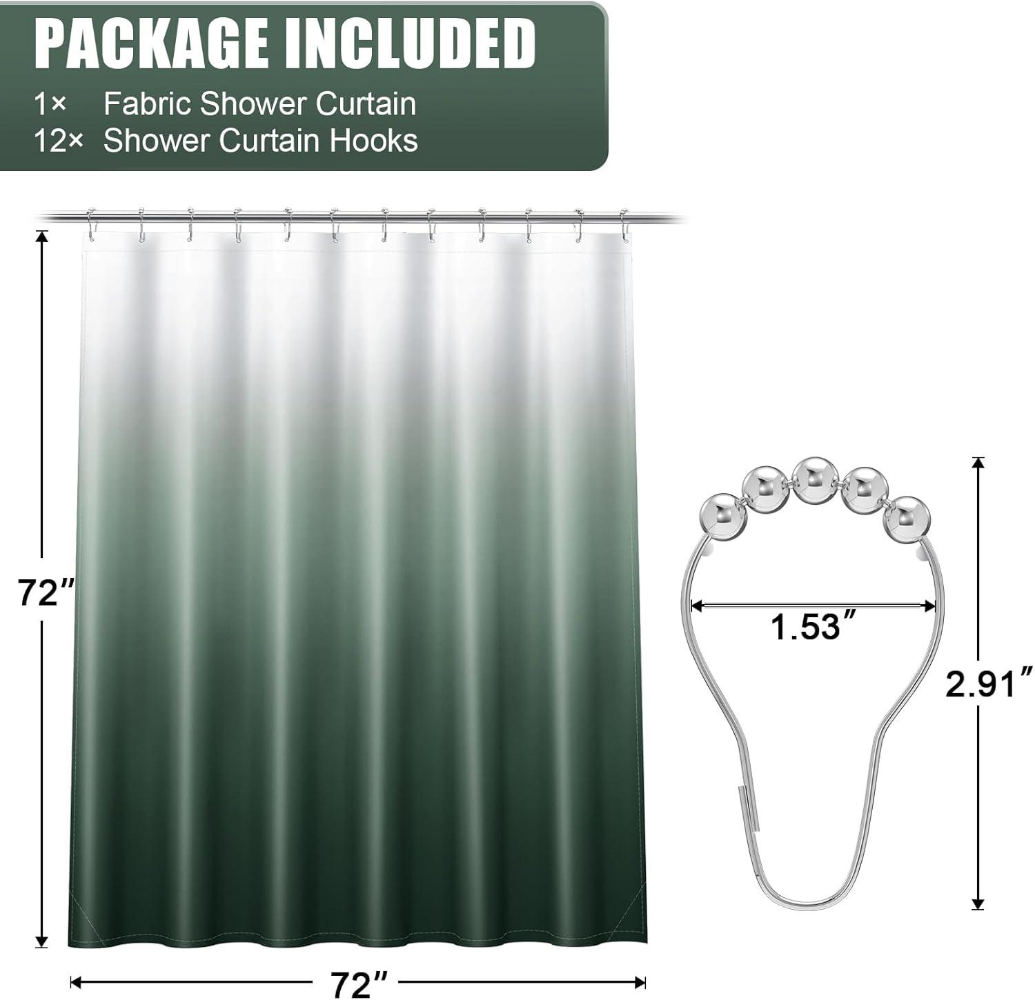 OLANLY Luxury Black and Grey Ombre Shower Curtain Sets with 12 Hooks, Waterproof and Washable Decorative Shower Curtains for Bathroom, 72×72 Inches(Blackish Green Ombre +12 Metal Hooks)