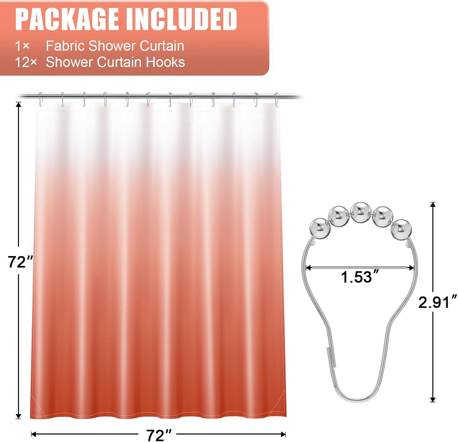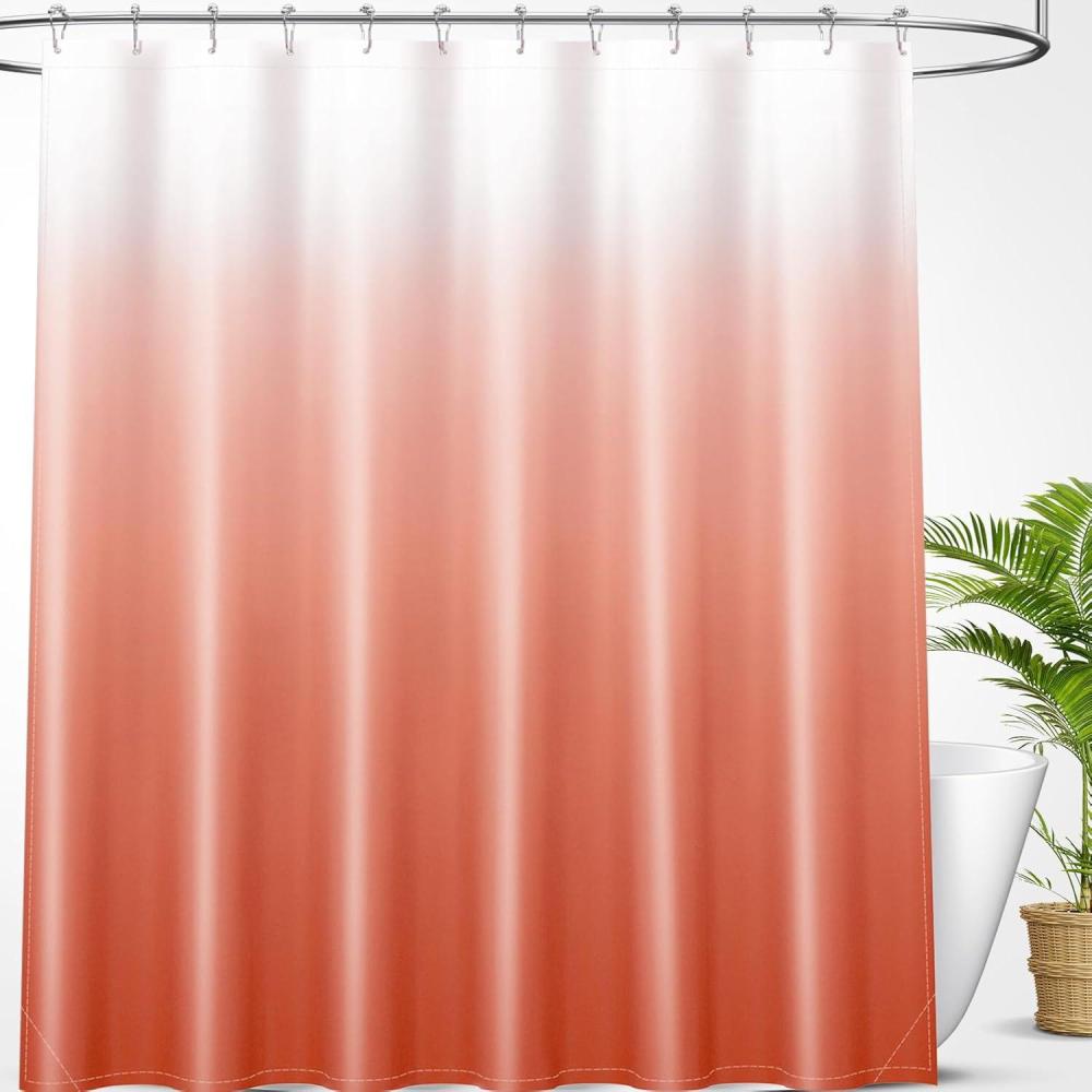 OLANLY Luxury Black and Grey Ombre Shower Curtain Sets with 12 Hooks, Waterproof and Washable Decorative Shower Curtains for Bathroom, 72×72 Inches(Coral Ombre +12 Metal Hooks)