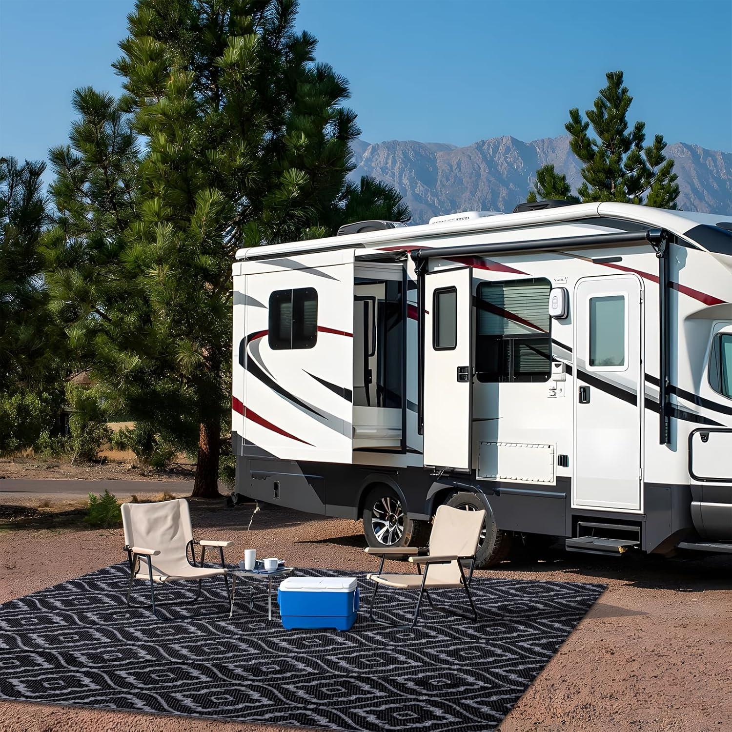 Reversible & Versatile: Featuring a modern geometric pattern on both sides, this indoor outdoor rug is designed for versatility. Simply flip it over for an instant style refresh. Perfect for patios, porches, RV campsites, and more, this camping rug adapts effortlessly to any setting.