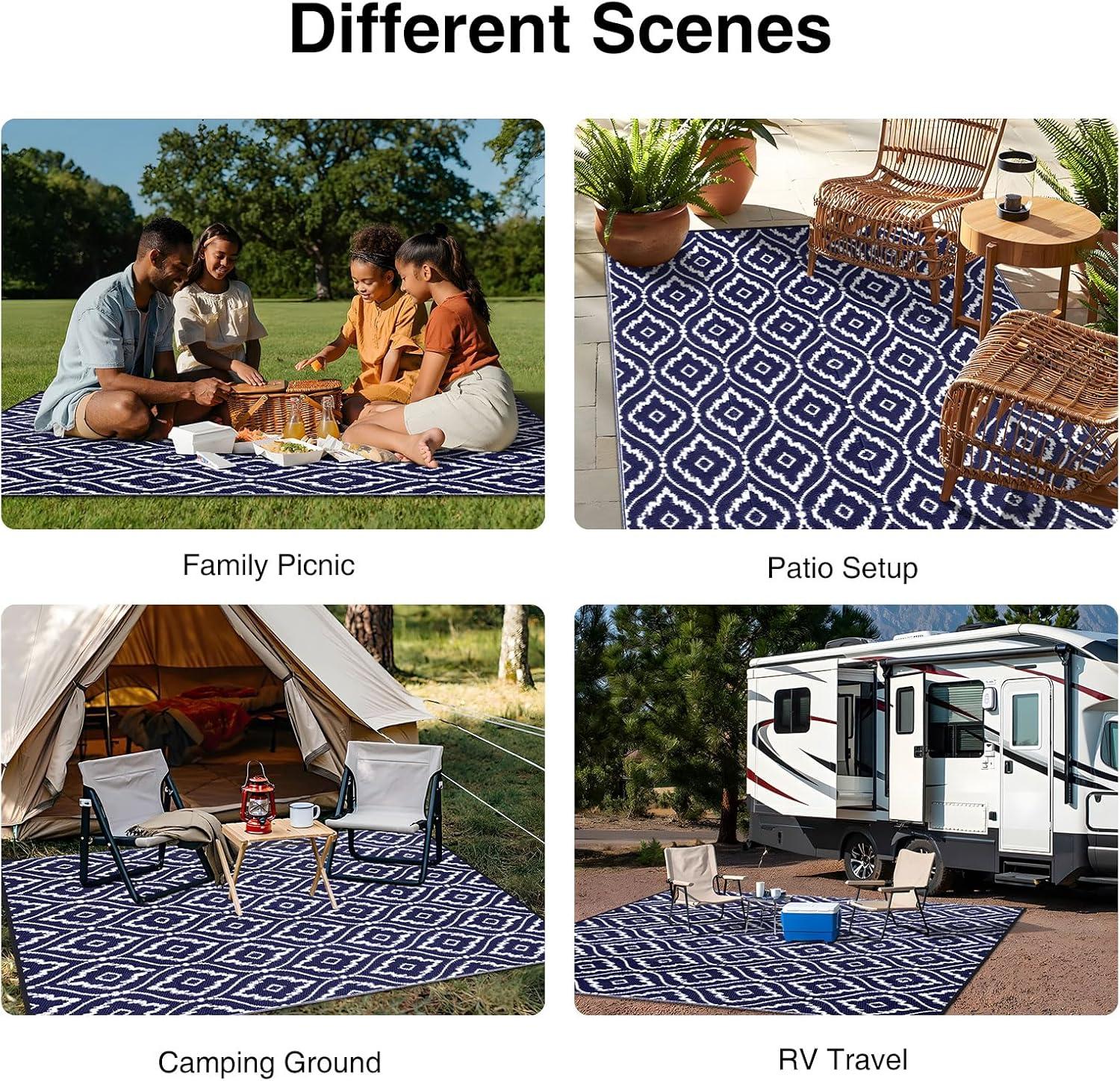 Reversible & Versatile: Featuring a modern geometric pattern on both sides, this indoor outdoor rug is designed for versatility. Simply flip it over for an instant style refresh. Perfect for patios, porches, RV campsites, and more, this camping rug adapts effortlessly to any setting.