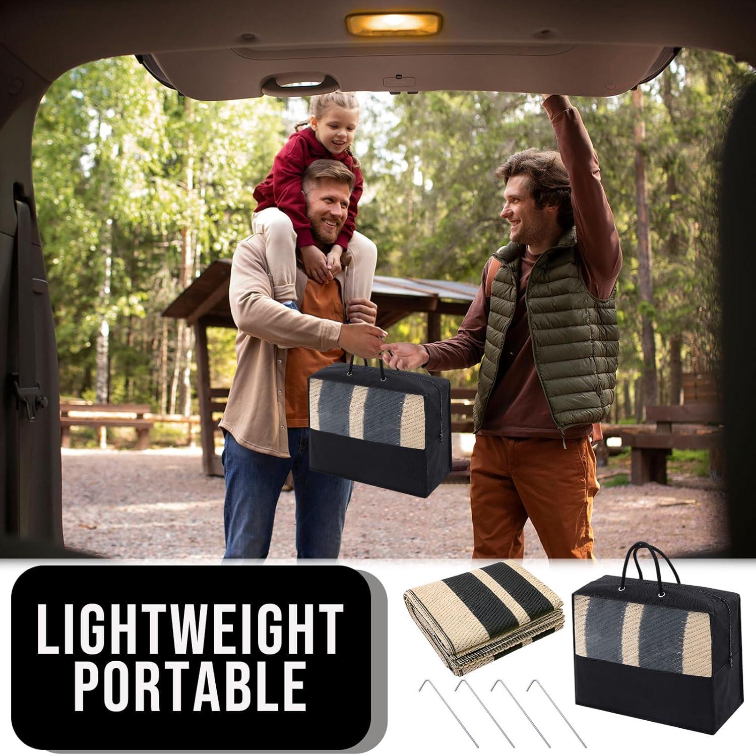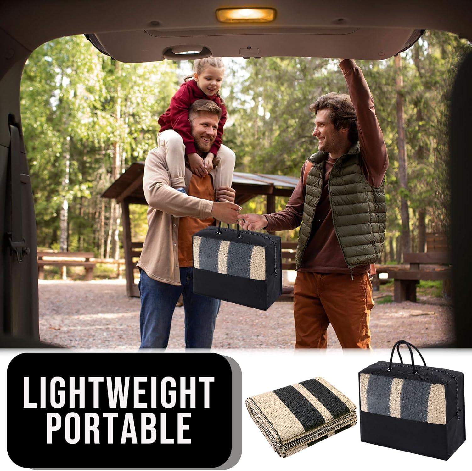 Reversible & Versatile: This patio rug is designed to instantly transform your space with a simple flip, making it perfect for balconies, patios, picnics, or even kids' play areas. Its dual-sided design functions perfectly as an indoor outdoor rug, while its portability makes it an excellent choice for a camping rug or outdoor activities.