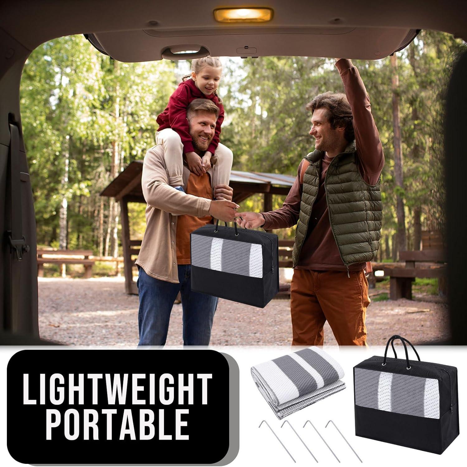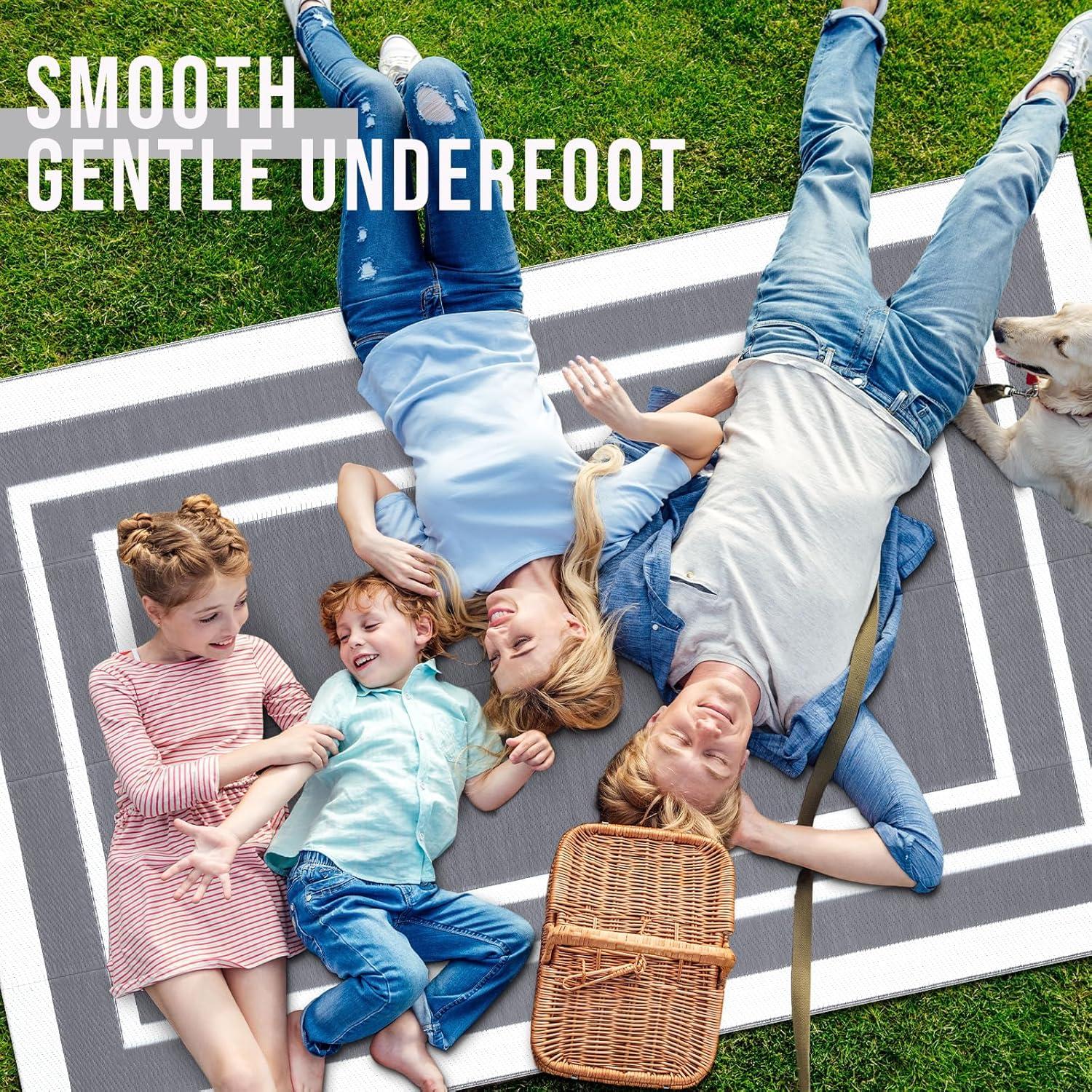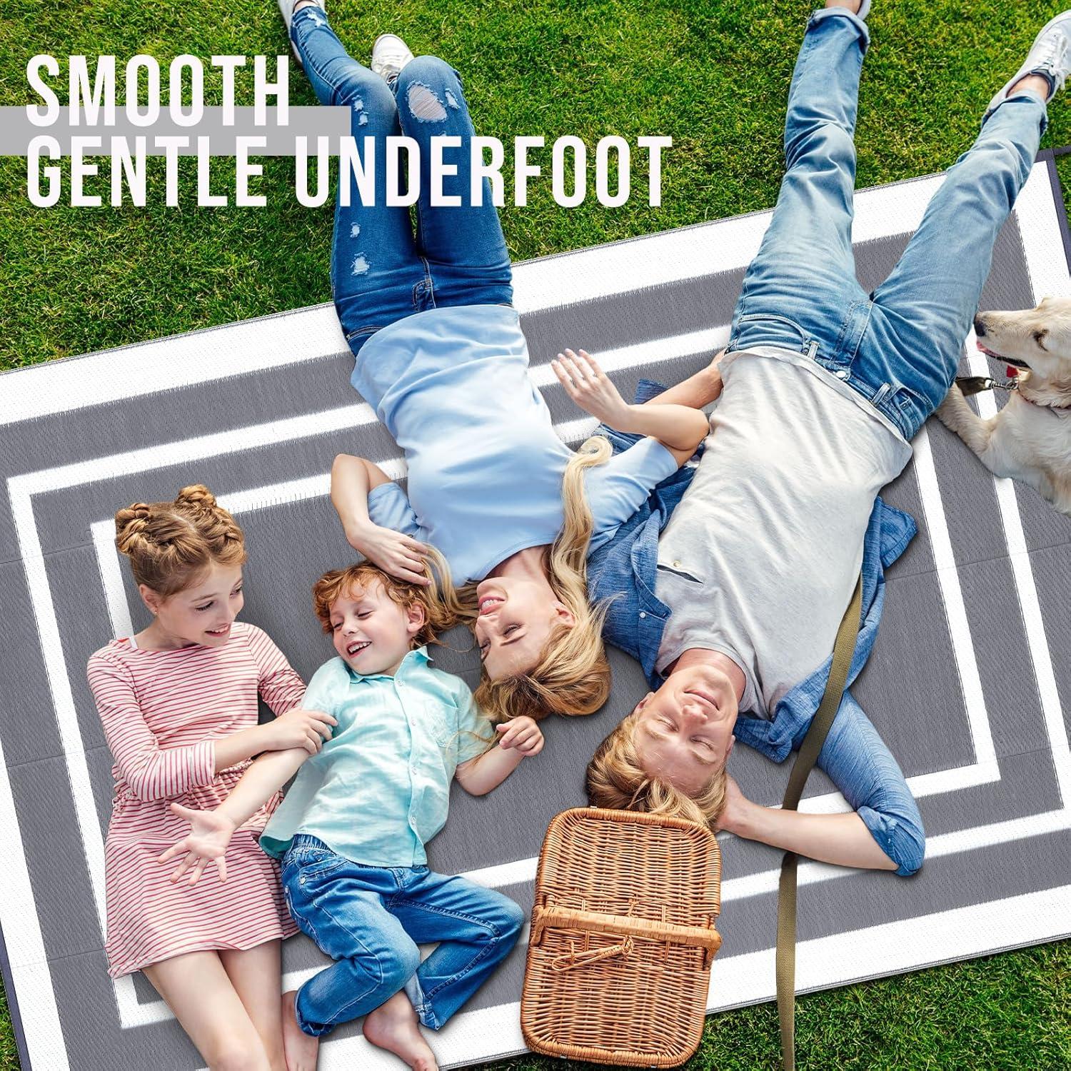 Reversible & Versatile: This patio rug is designed to instantly transform your space with a simple flip, making it perfect for balconies, patios, picnics, or even kids' play areas. Its dual-sided design functions perfectly as an indoor outdoor rug, while its portability makes it an excellent choice for a camping rug or outdoor activities.