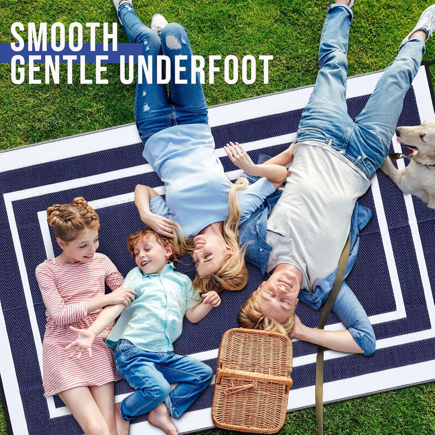 Reversible & Versatile: This patio rug is designed to instantly transform your space with a simple flip, making it perfect for balconies, patios, picnics, or even kids' play areas. Its dual-sided design functions perfectly as an indoor outdoor rug, while its portability makes it an excellent choice for a camping rug or outdoor activities.