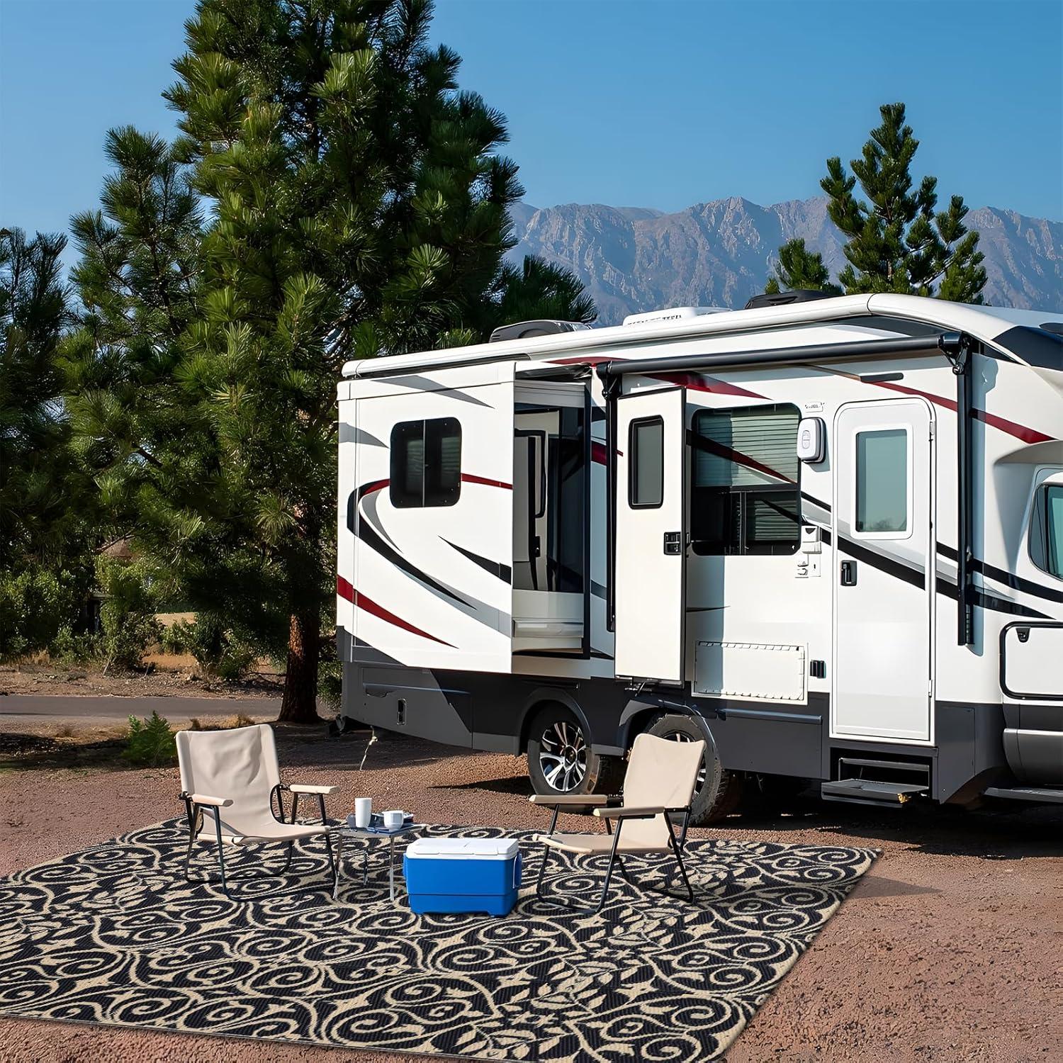 UV-Resistant & Durable: Equipped with a UV-protective layer, this outdoor patio rug resists fading, keeping its vibrant colors intact even under prolonged sun exposure. Reinforced edges add extra durability, making it a reliable choice for all-weather use.