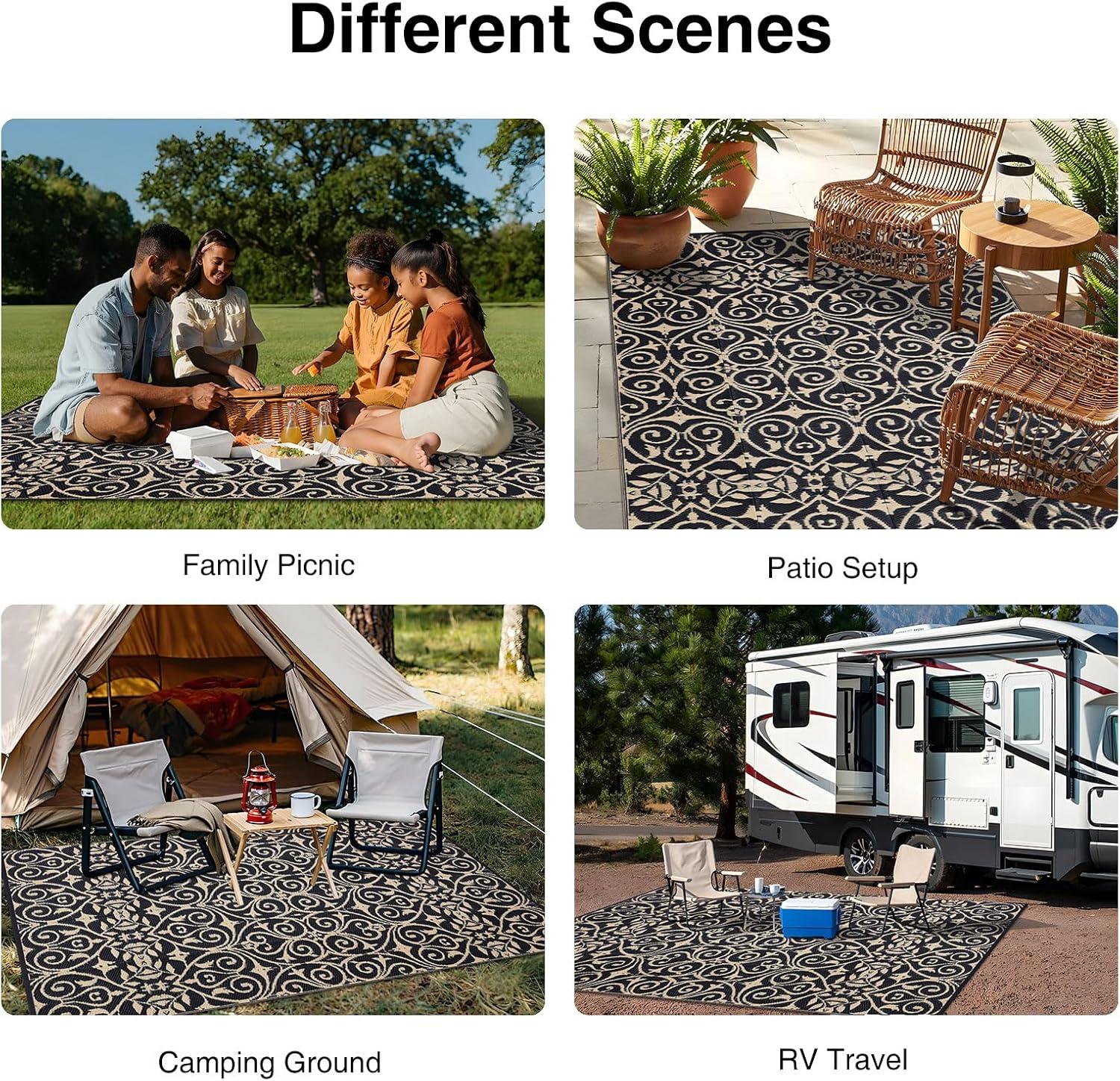 OLANLY Outdoor Rug Waterproof 5×8 ft Clearance, Reversible Outdoor Plastic Straw Rug with Floral Pattern, RV Mat for Patio, Camping, Balcony, Deck, Backyard, Black & White(Black & Beige)