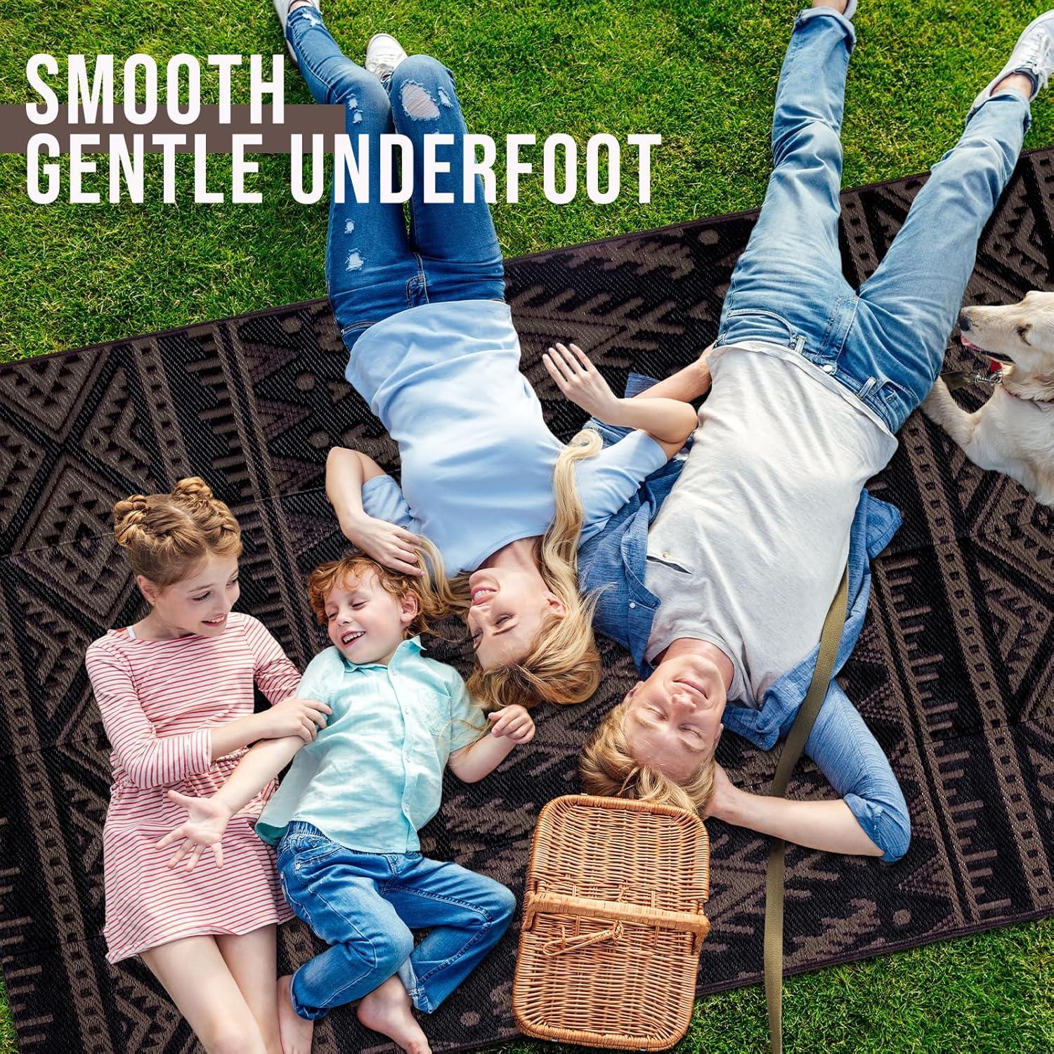 EASY TO CARE: Made from recycled plastic straws; waterproof and fast-drying; the tightly woven texture allows liquid to seep through for quick cleaning, and then air dries rapidly, keeping the camping rug looking fresh