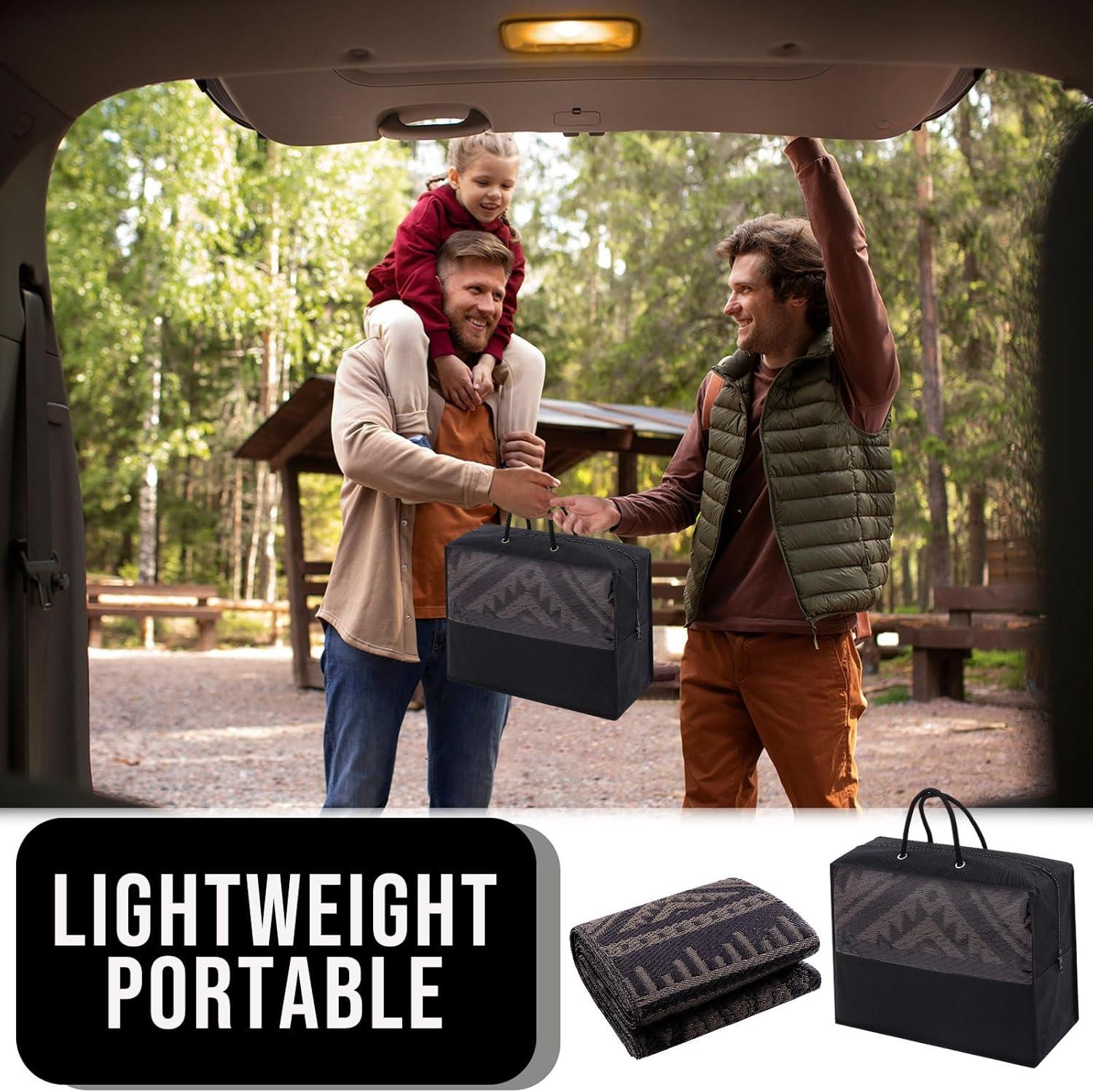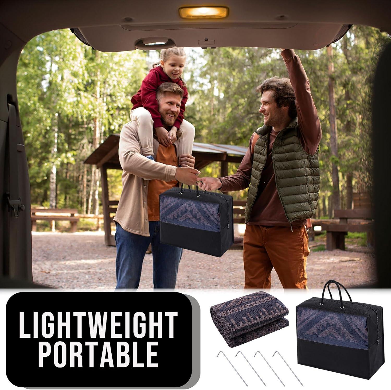 LIGHTWEIGHT & PORTABLE: The lightweight foldable construction makes this patio rug ultra-portable; take them anywhere from campouts to picnics without adding extra bulk; with a matching carry bag for easy transport and storage
